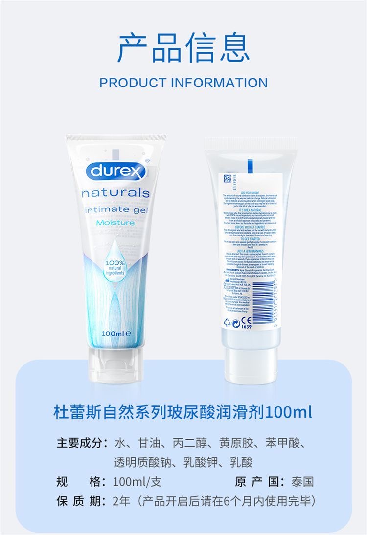 【年末亏本清仓 华熙生物玻尿酸95%】杜蕾斯人体玻尿酸润滑液 水溶润滑女性私处专用 可舔100ml