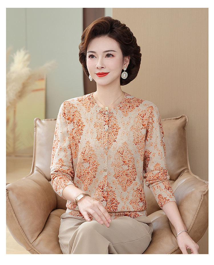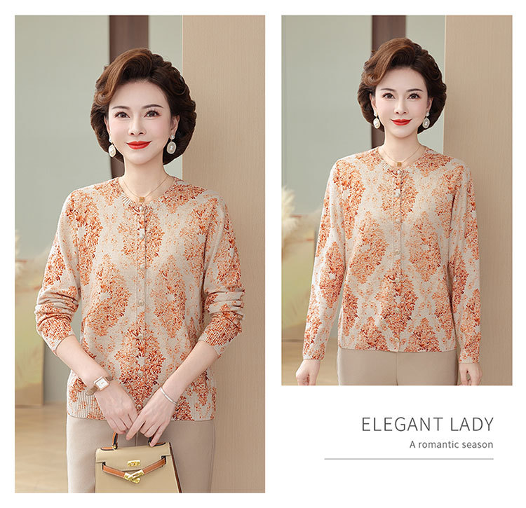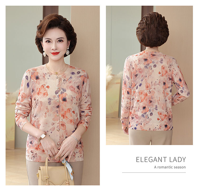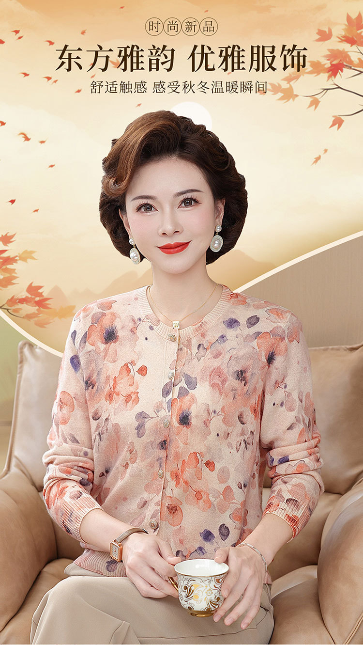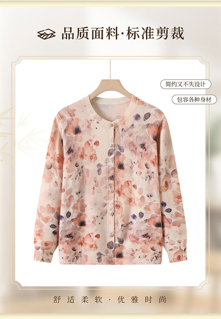 CCps6867装100%纯羊毛衫开衫女圆领春秋冬新款中老年人女士毛衣针织衫 商品图0
