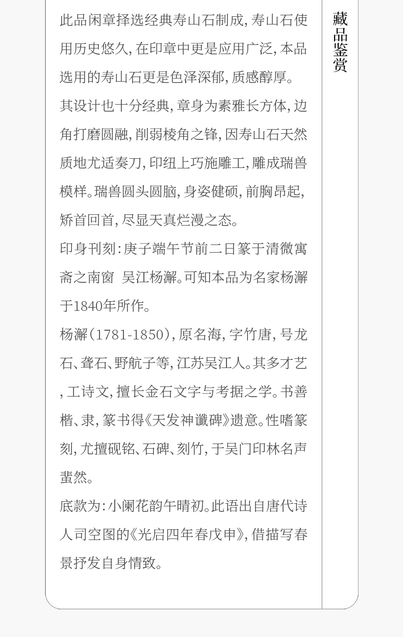 清 杨澥款寿山石瑞兽钮诗文闲章