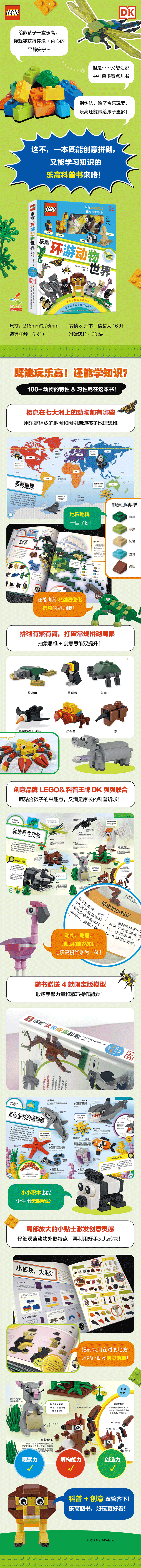 【热销】DK乐高环游动物世界 5岁+|【赠送60块颗粒】乐高带你认识100+奇妙动物及它们的栖息地!