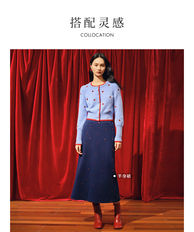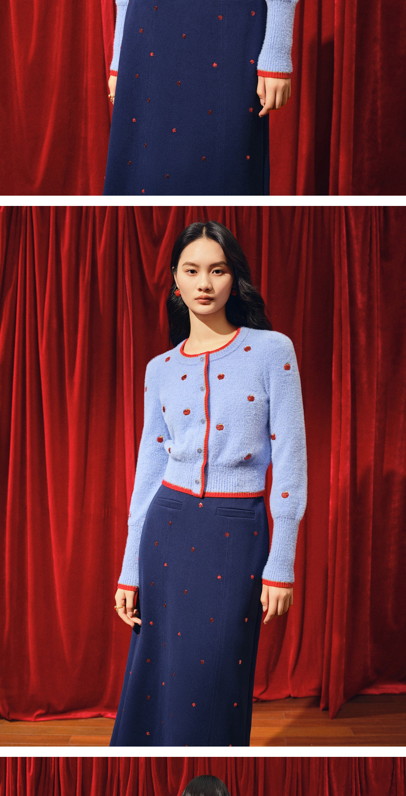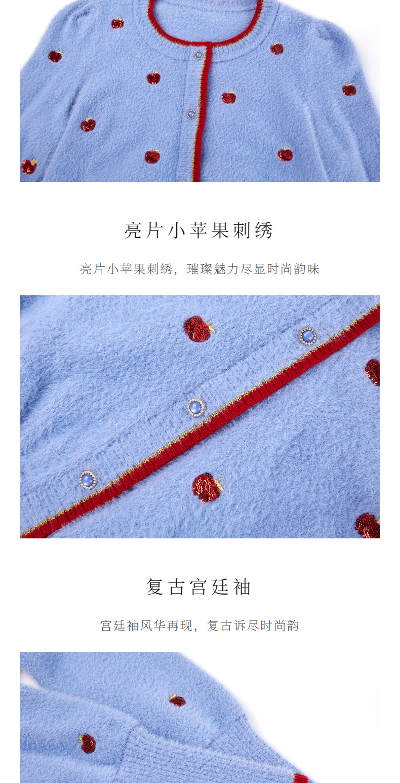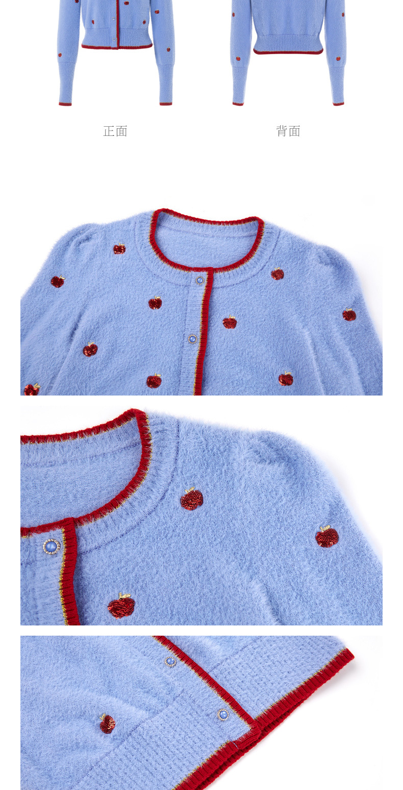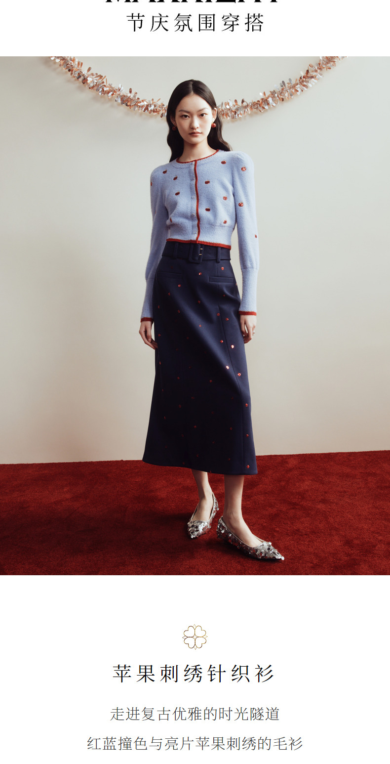 MAXRIENY苹果刺绣针织衫修身优雅复古红蓝撞色毛衫(货号:MC88SW781)