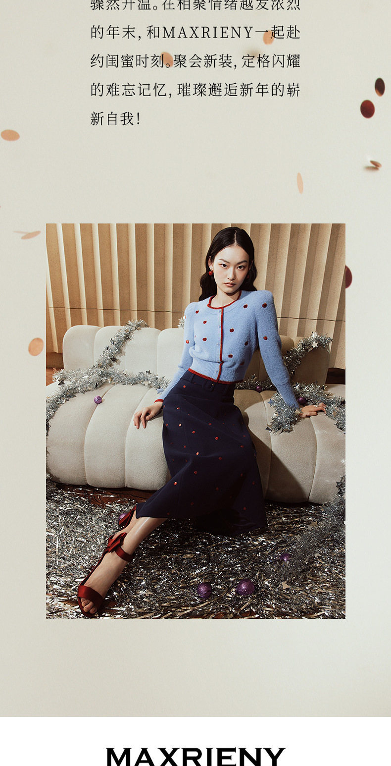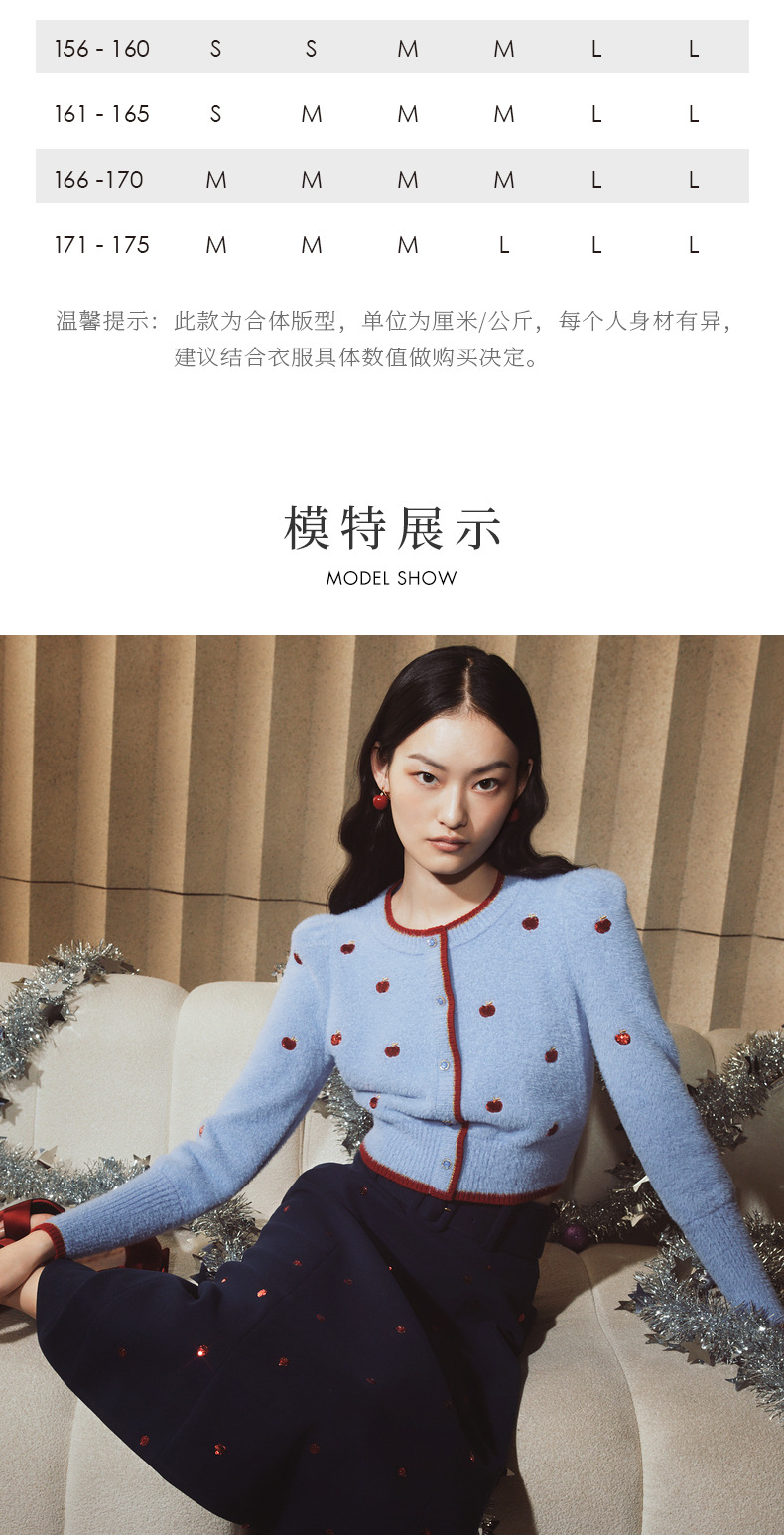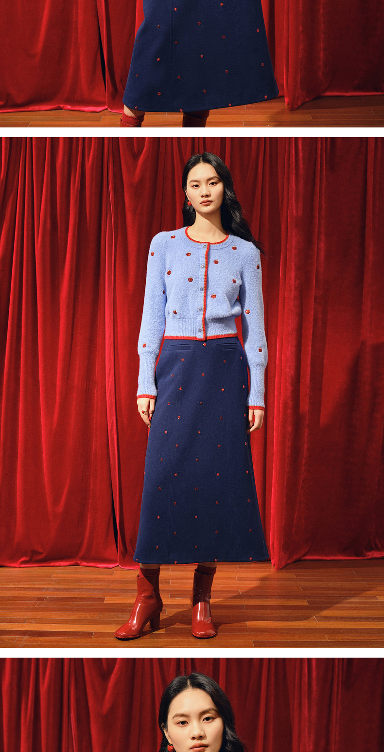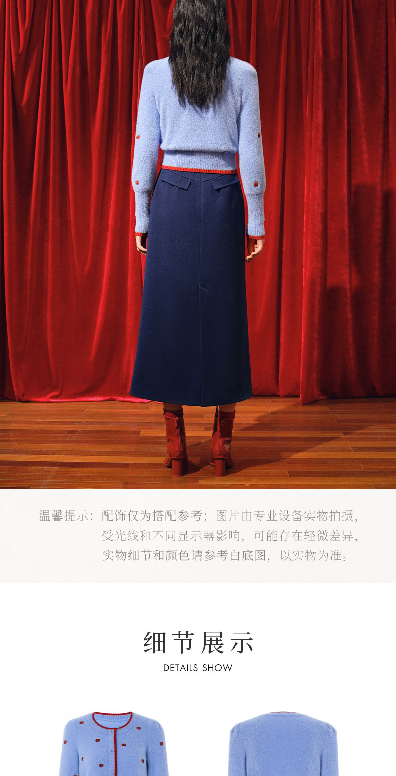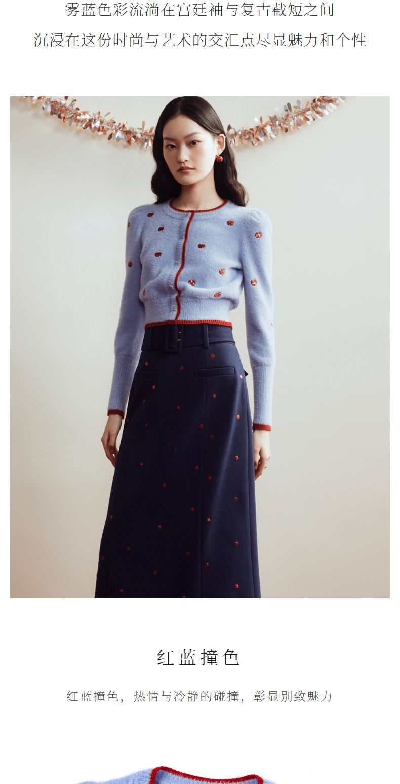 MAXRIENY苹果刺绣针织衫修身优雅复古红蓝撞色毛衫(货号:MC88SW781)