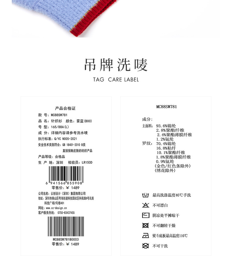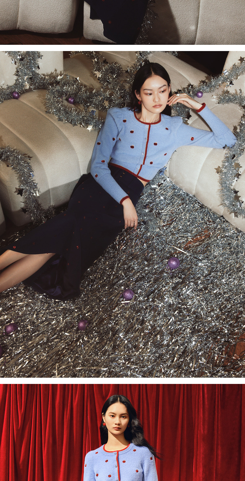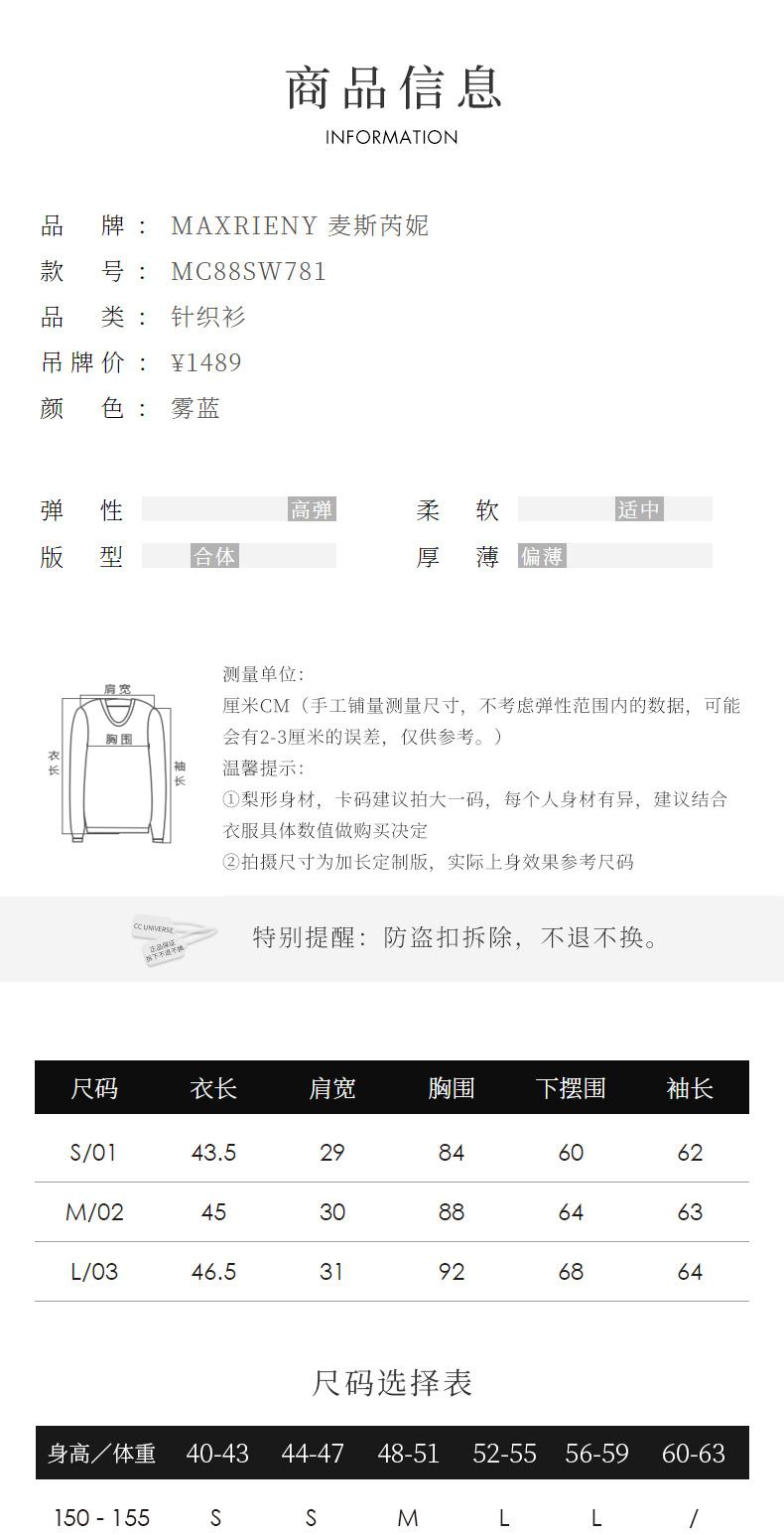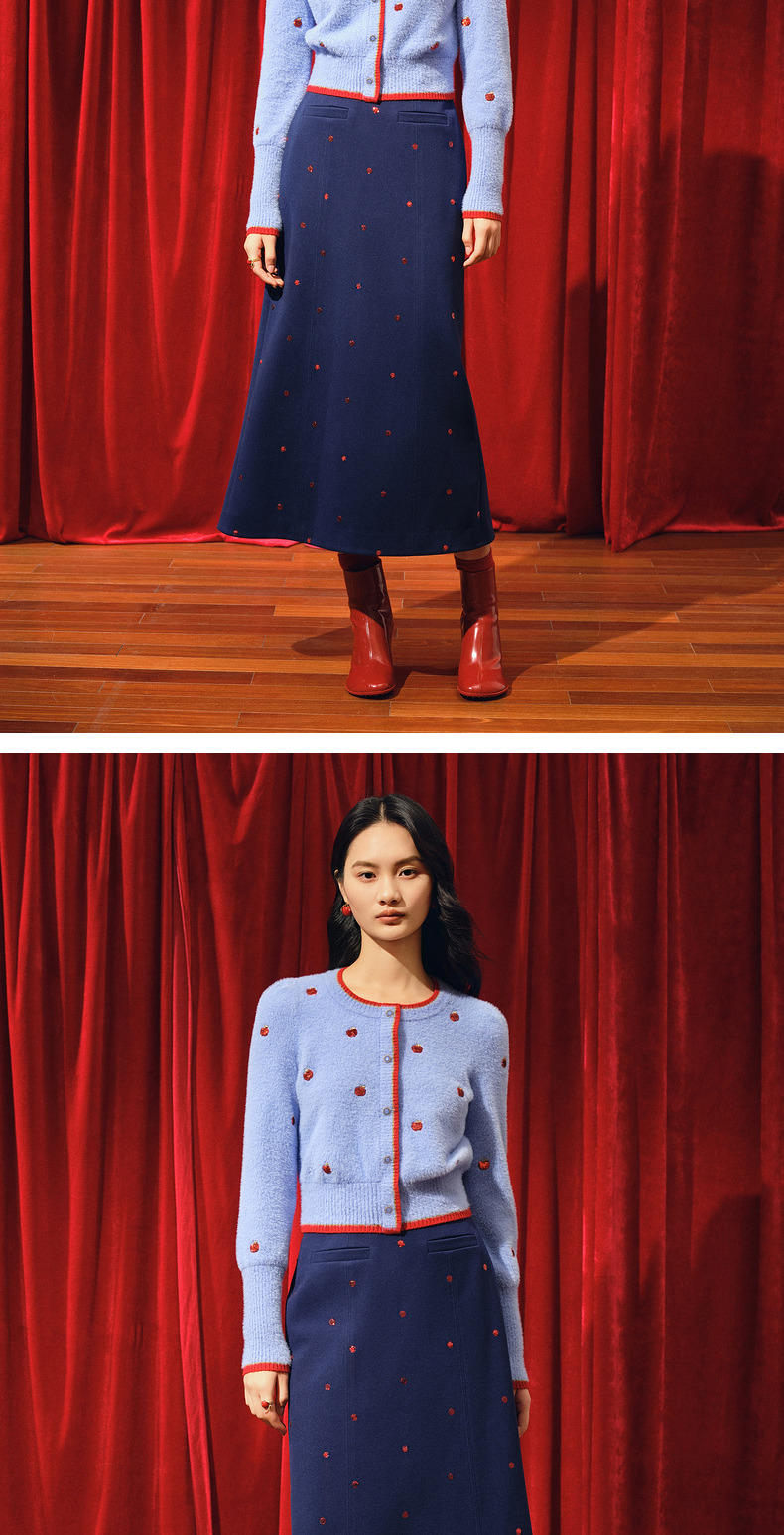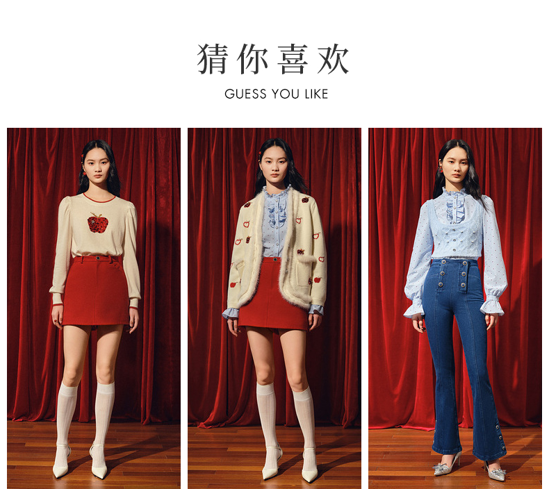 MAXRIENY苹果刺绣针织衫修身优雅复古红蓝撞色毛衫(货号:MC88SW781)