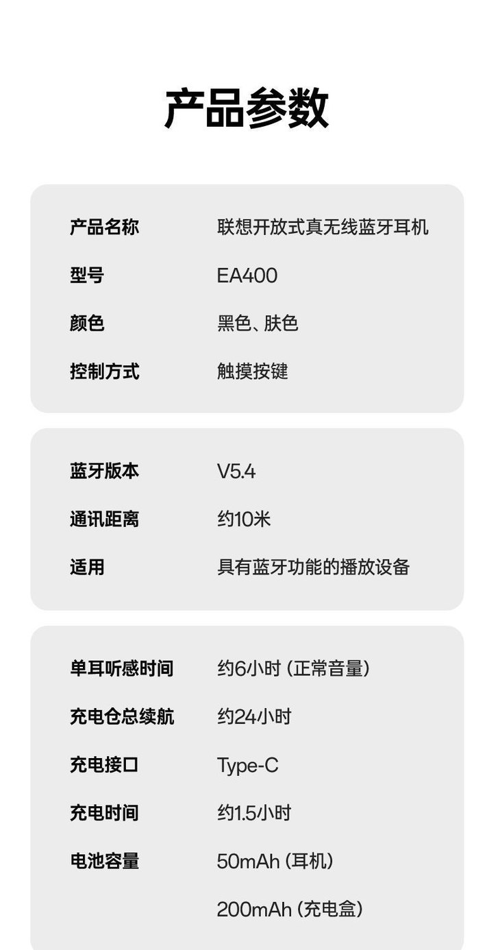 Lenovo联想-EA400蓝牙耳机气骨传导2025新款久戴不痛高音质男女