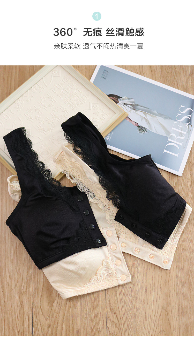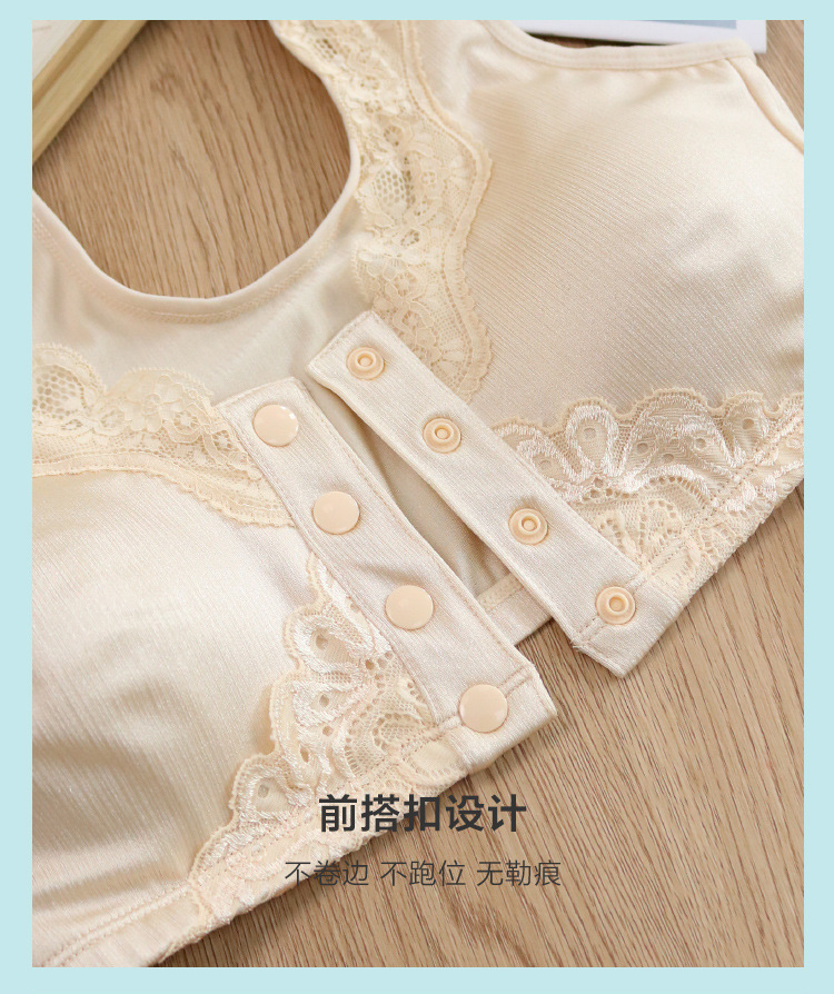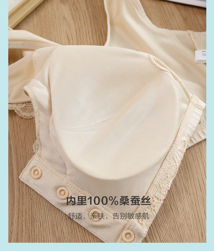 夏季薄款钢圈真丝内衣背心式蚕丝前扣文胸无大码调整型收副乳TG02S156