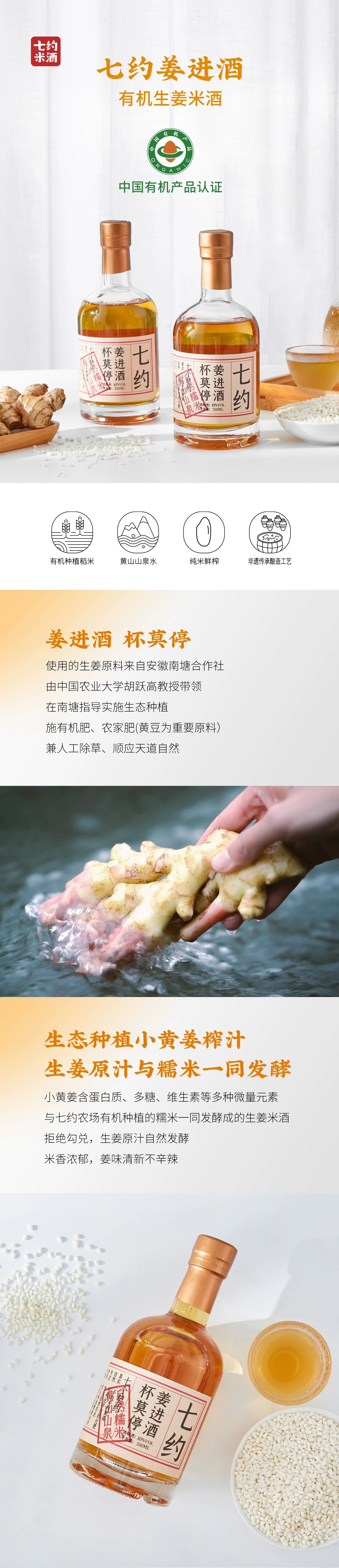 杞冠臻选|七约有机米酒 生姜米酒 生态小黄姜原汁酿造 10度 350ml 2件起包邮