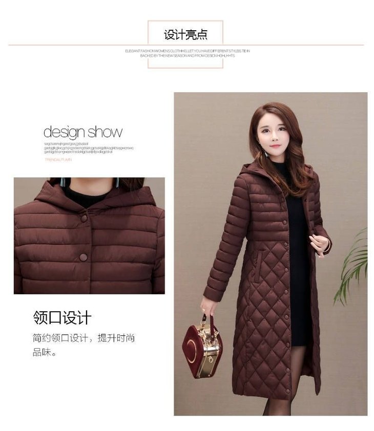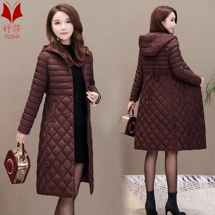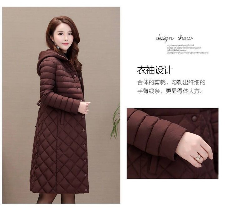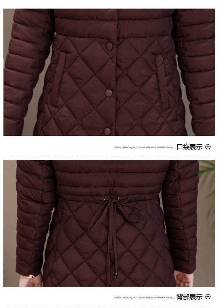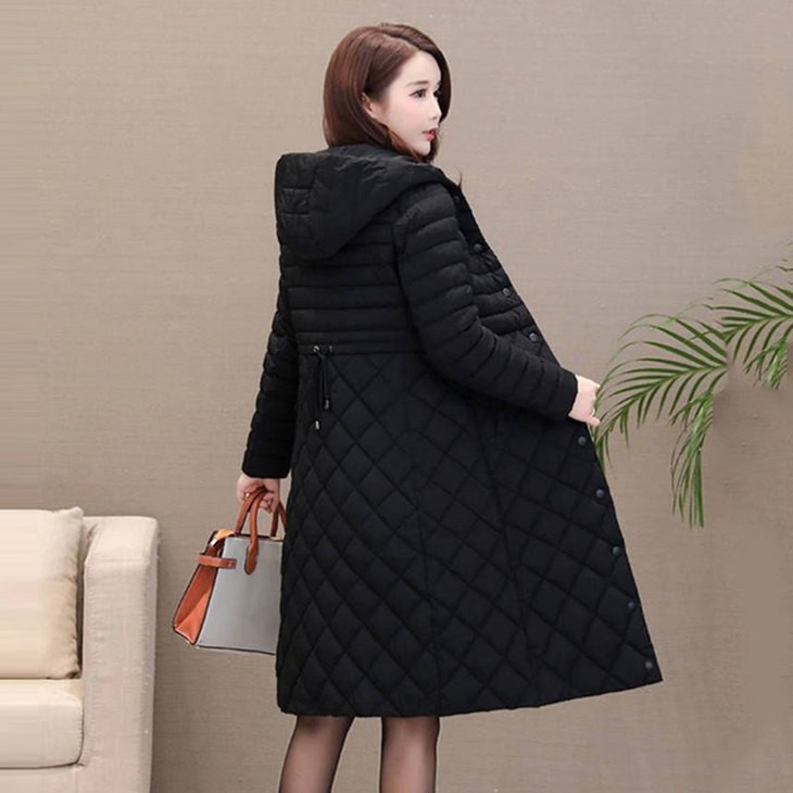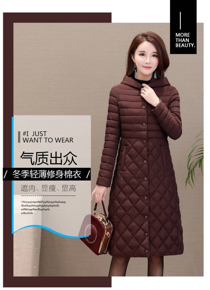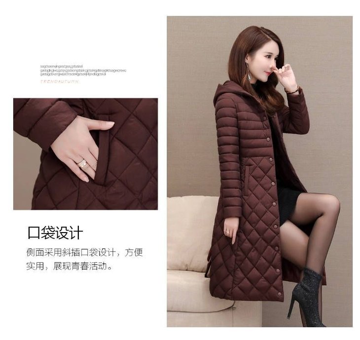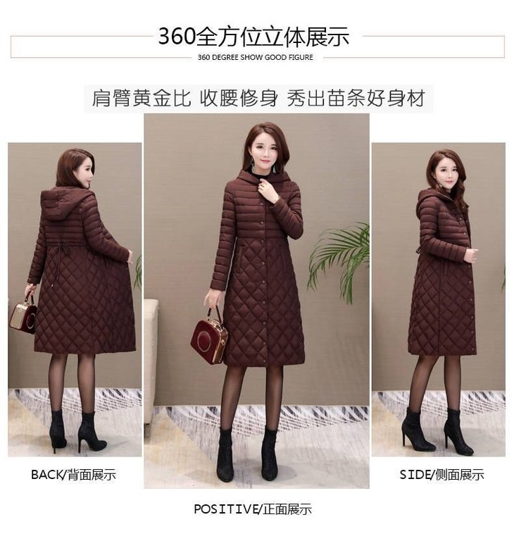 JXG-新款秋冬装修身显瘦过膝菱格棉袄棉服冬季外套女