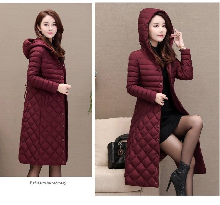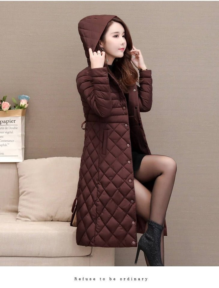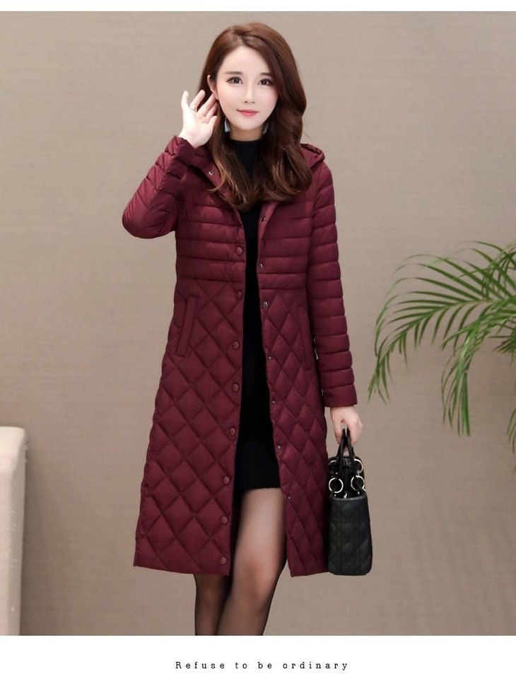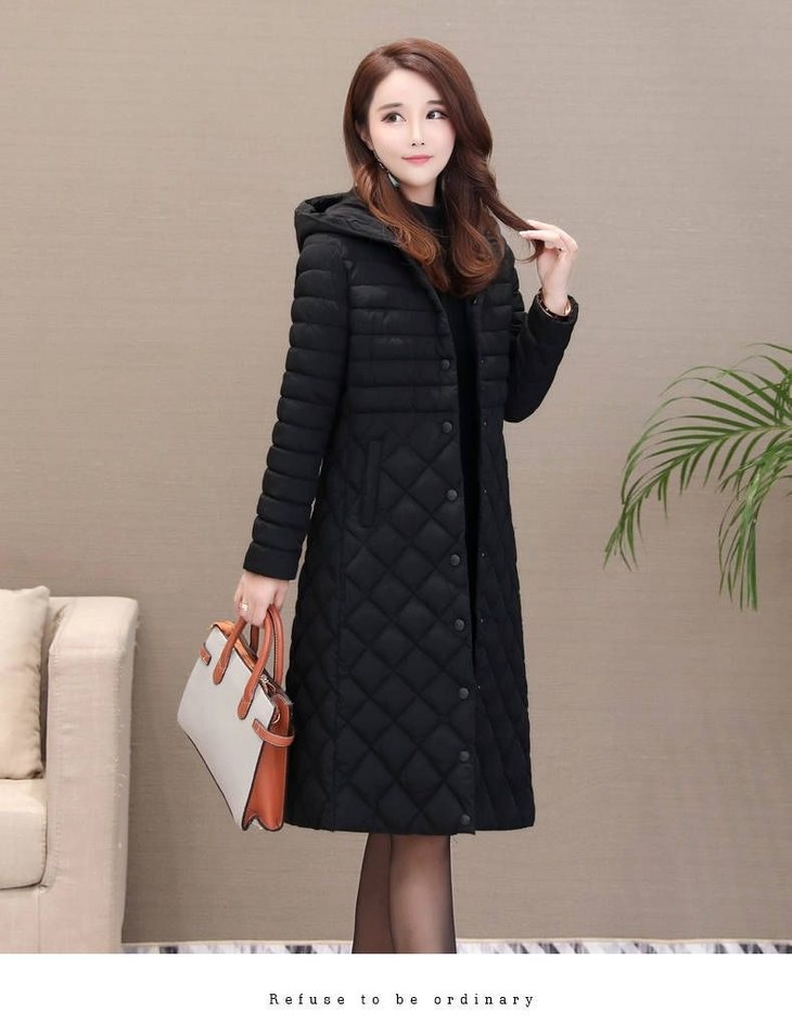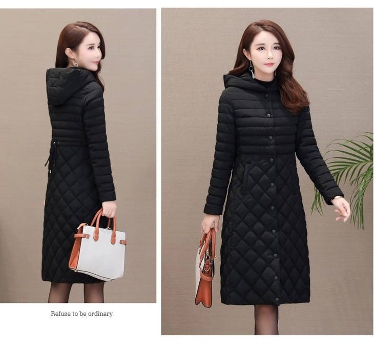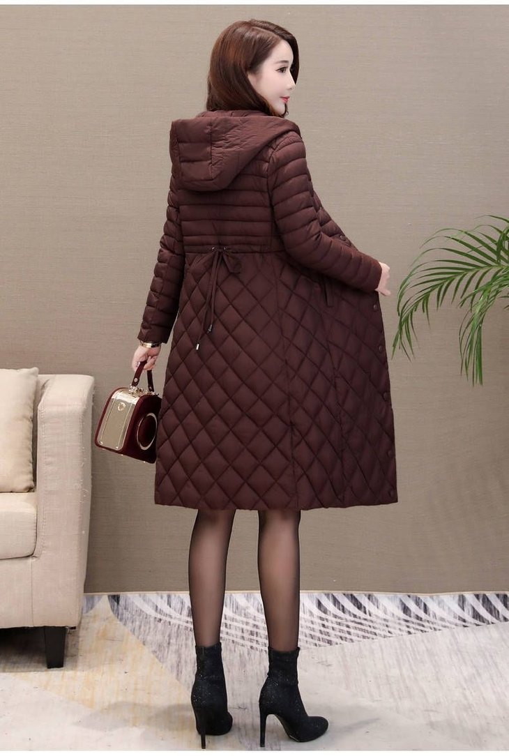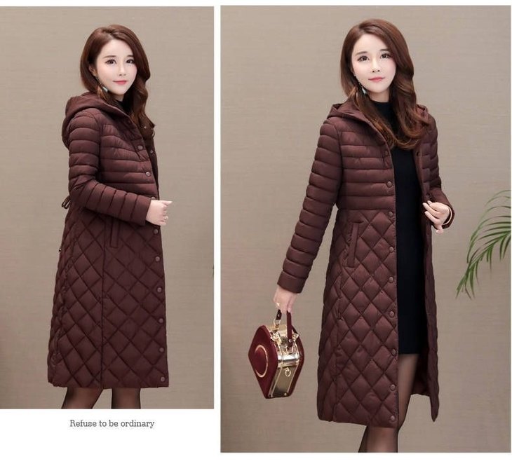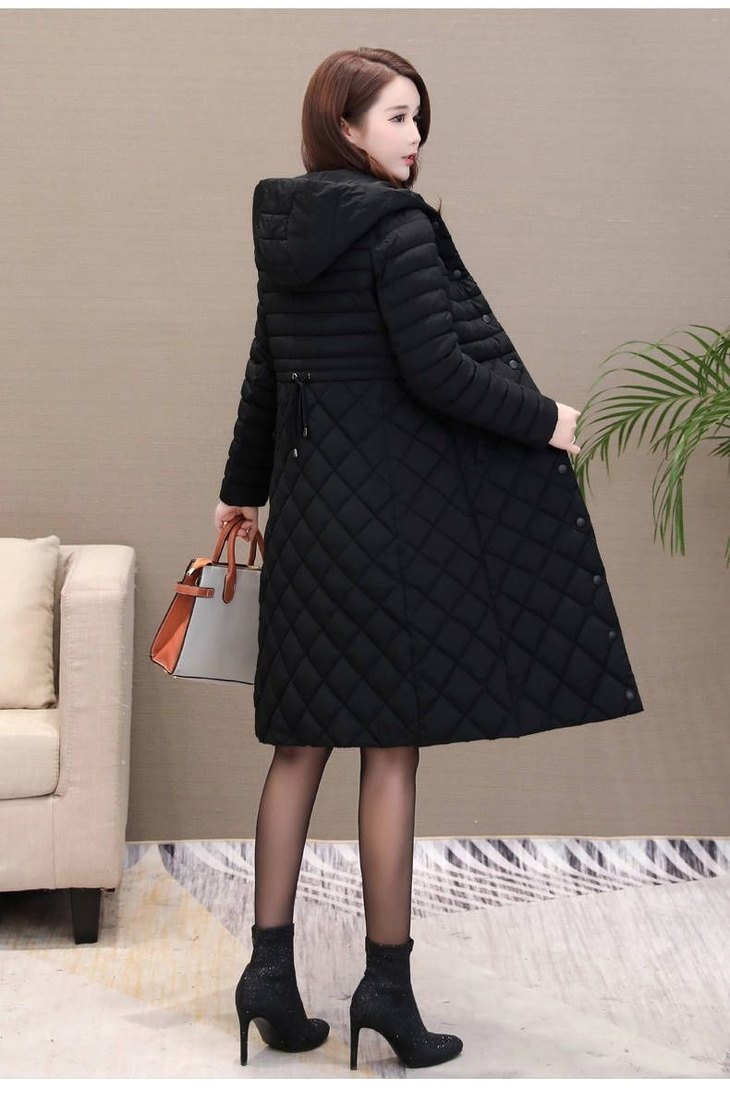 JXG-新款秋冬装修身显瘦过膝菱格棉袄棉服冬季外套女