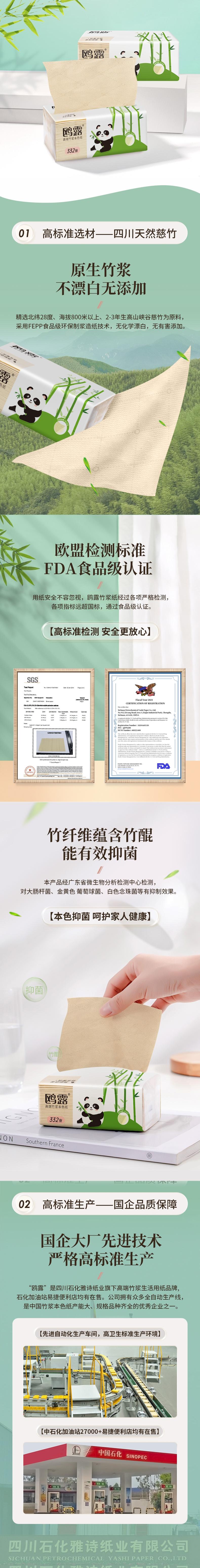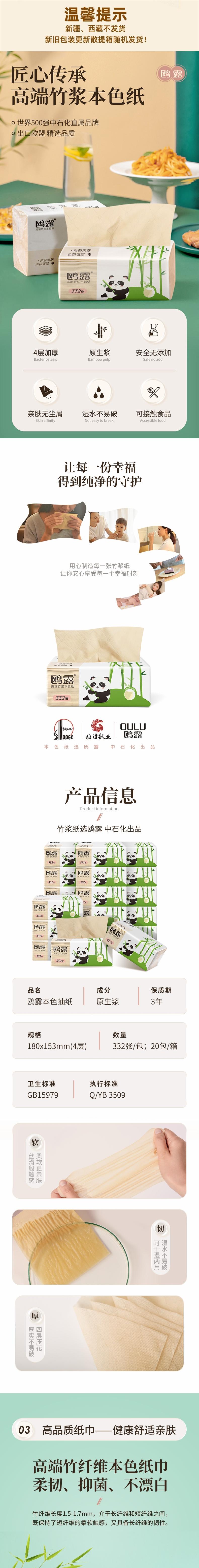 鸥露 竹浆本色抽纸4层83抽20包*2箱 OLBJ83S202