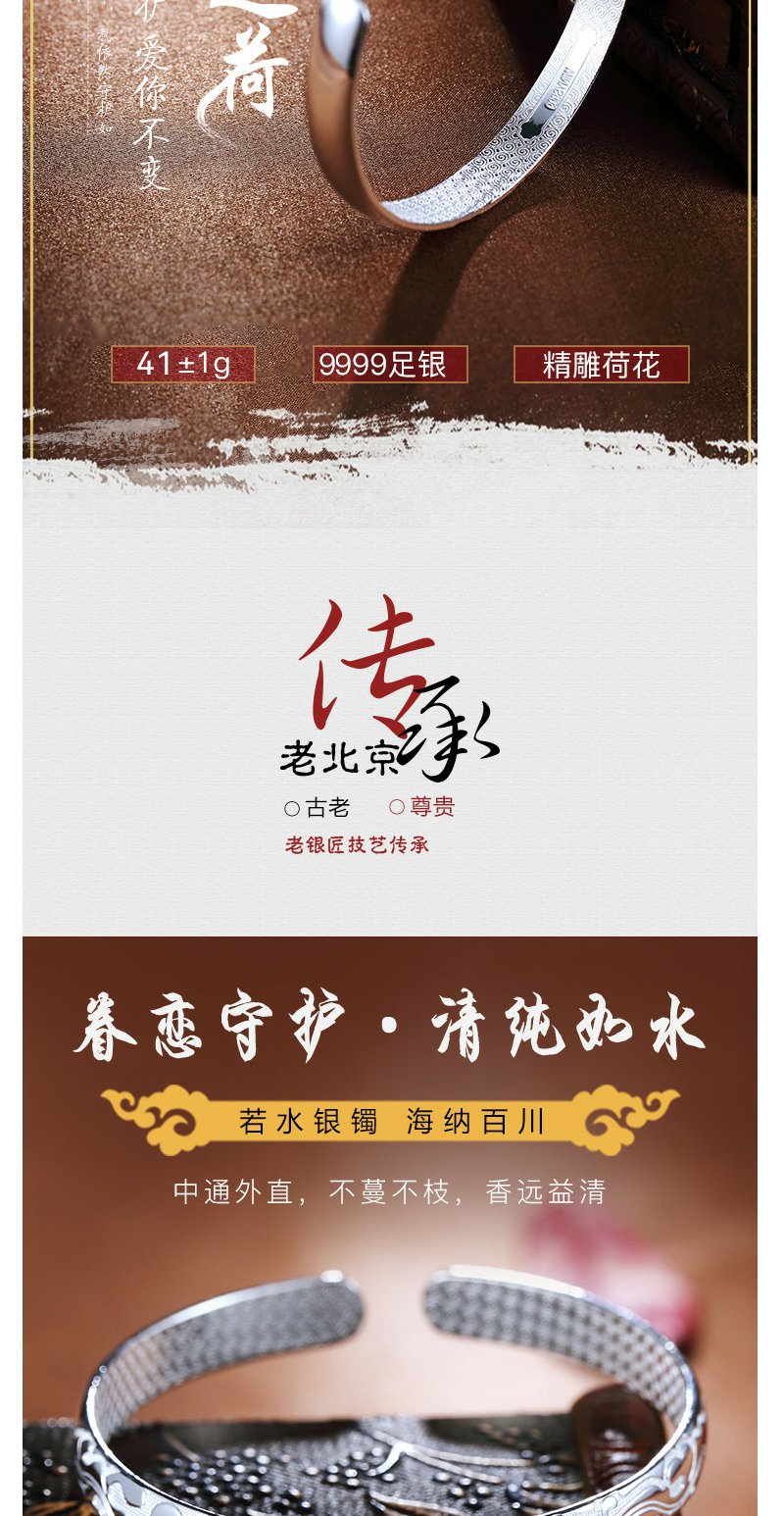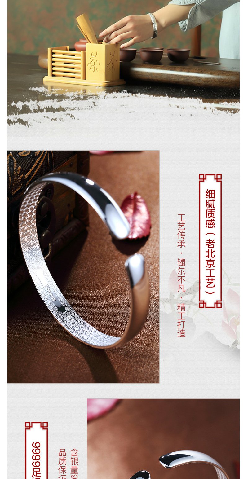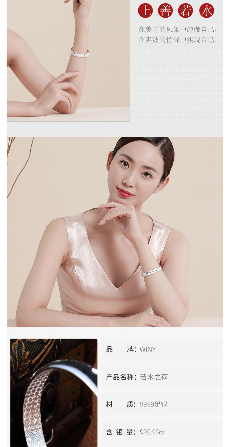 Winy9999足银若水之荷手镯送女友闺蜜节日生日礼物