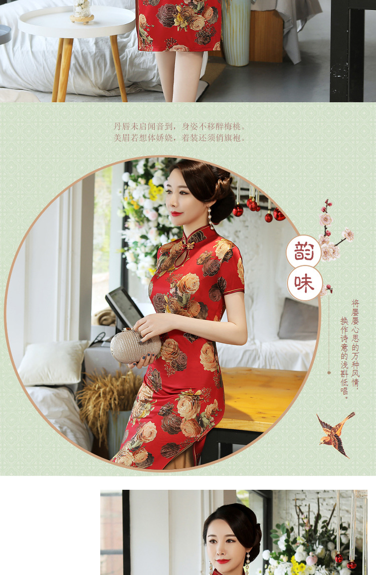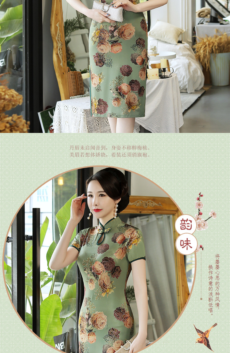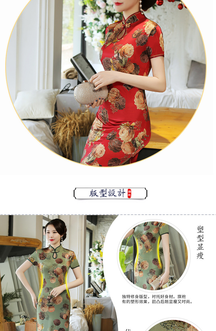 MQ-18Q332夏季新款中长款良水滴领修身大码旗袍YY
