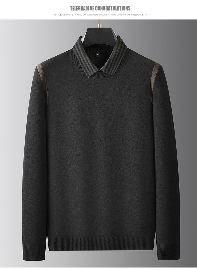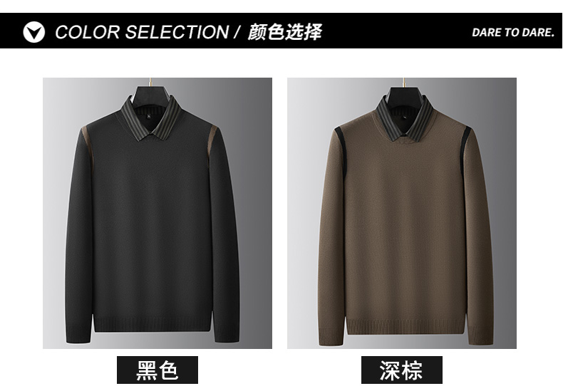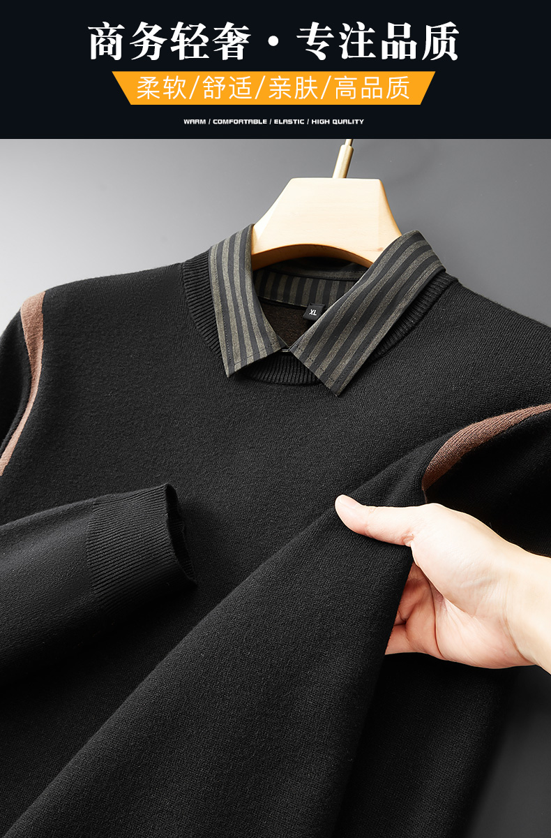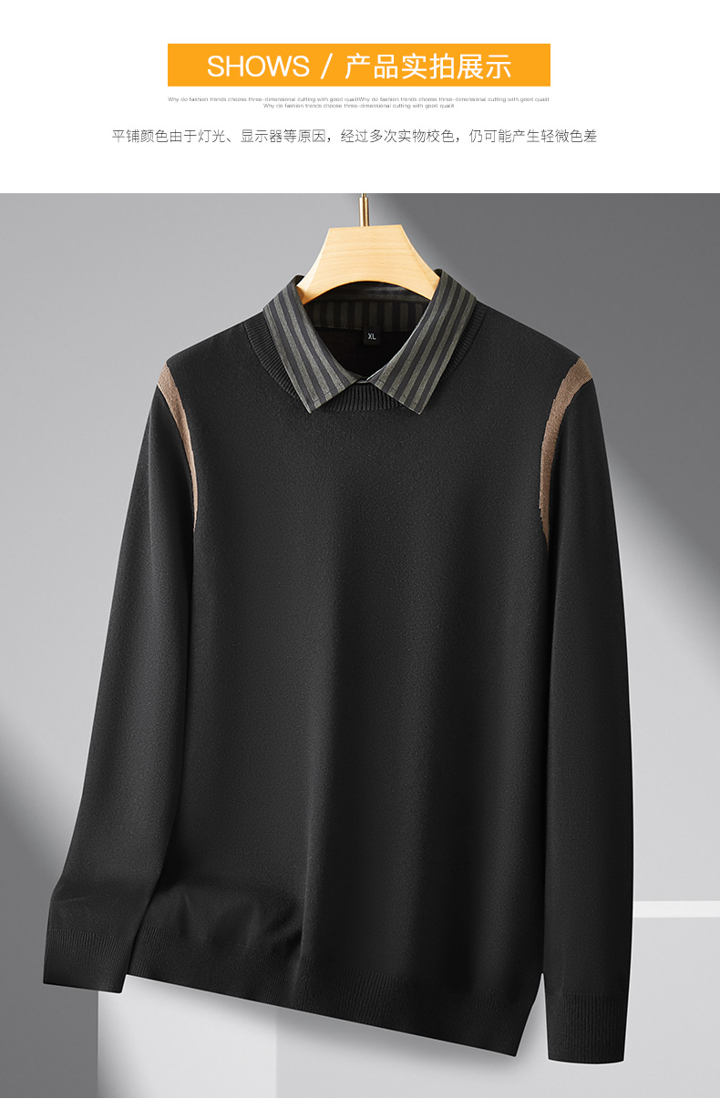 【假两件】【新款DPF】大依优型大码假两件长袖T恤衬衫领中厚毛衣针织衫加肥加大肥佬休闲商务宽松透气上衣打底