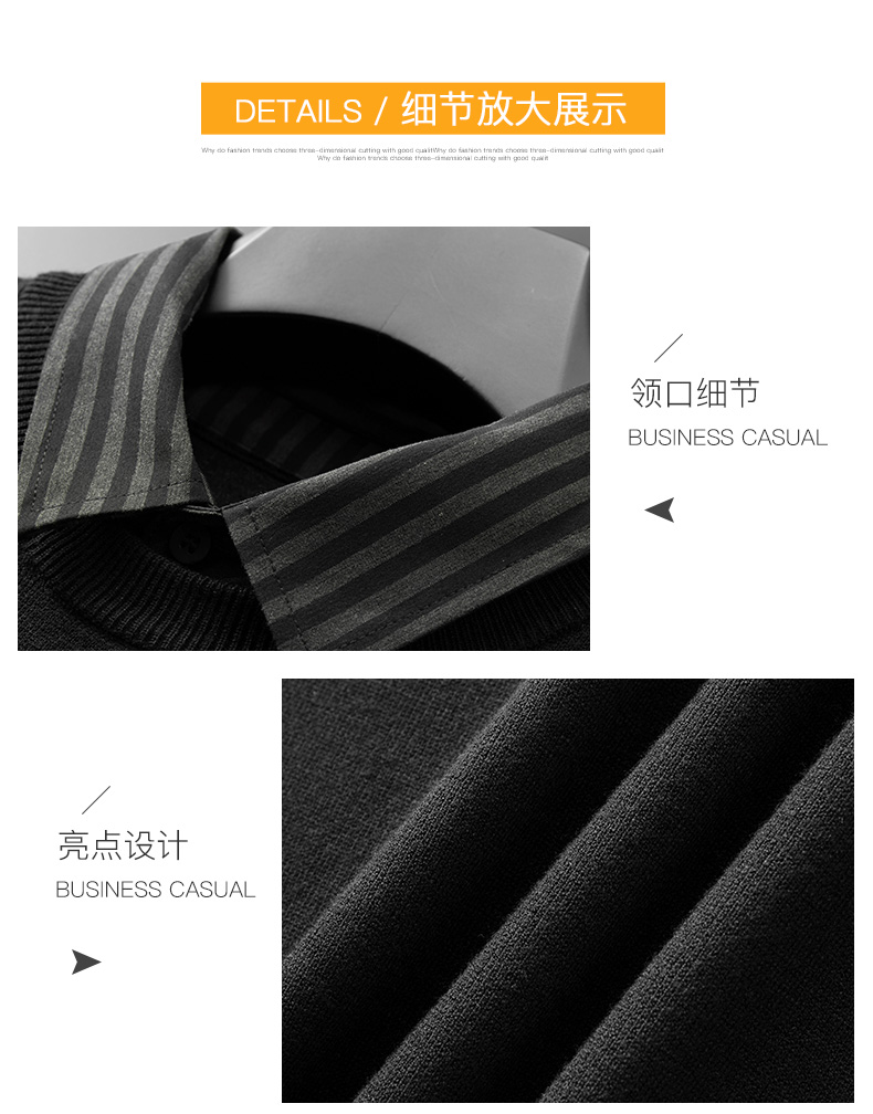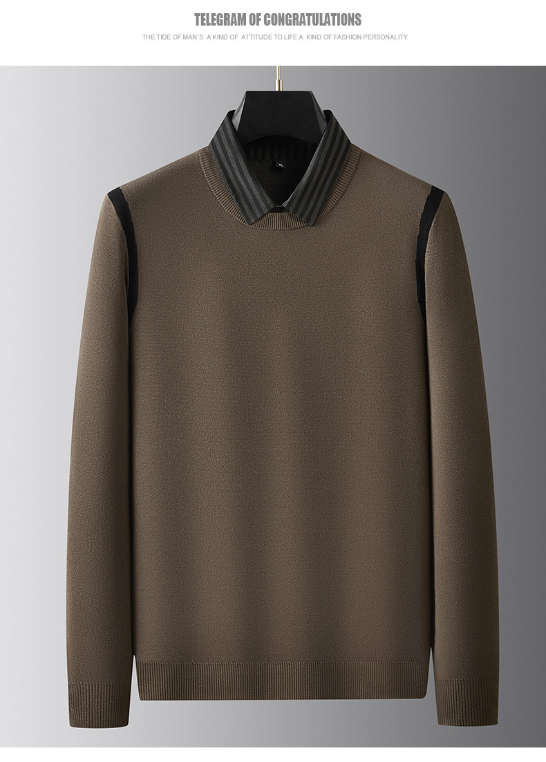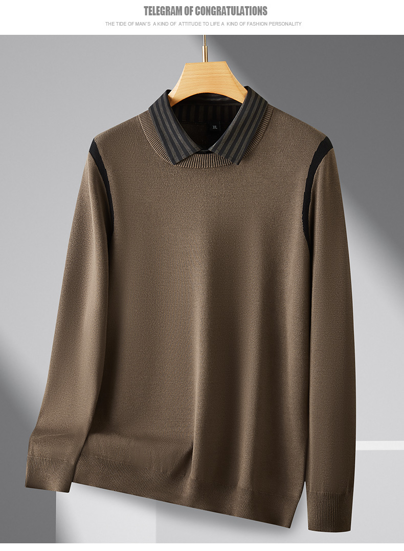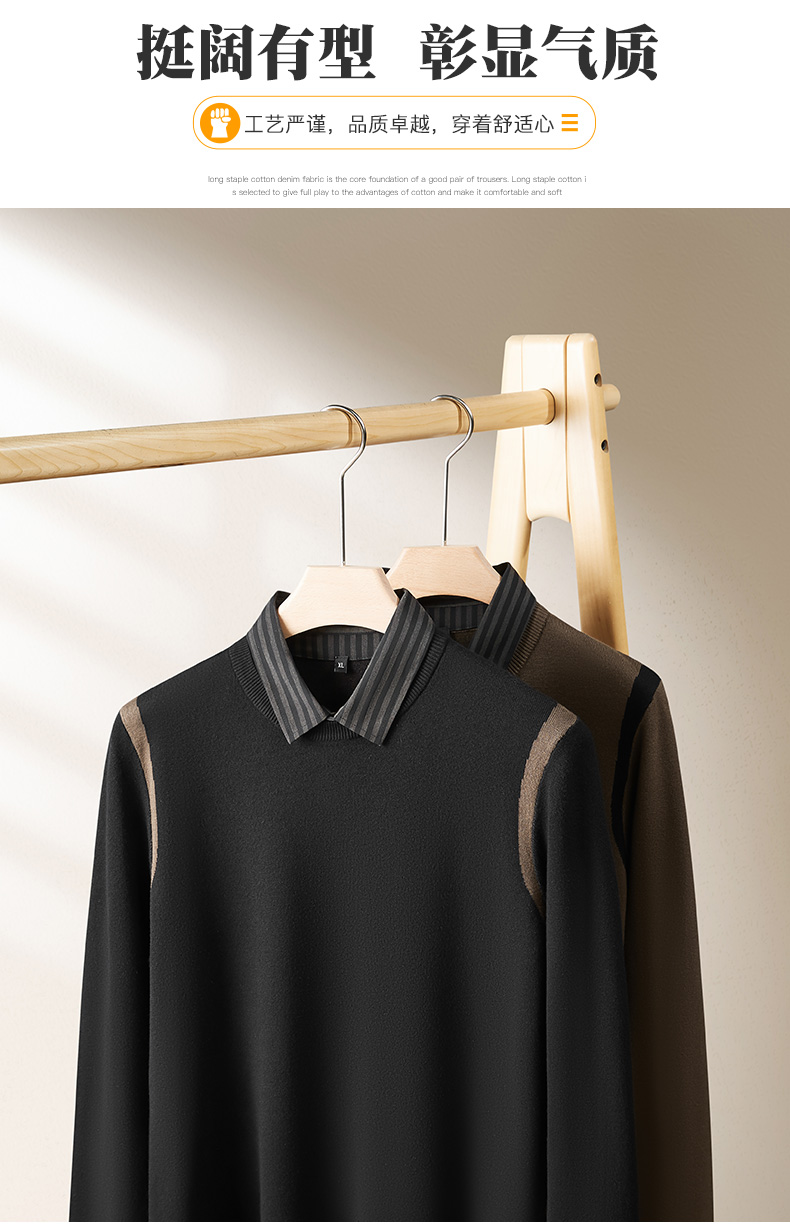 【假两件】【新款DPF】大依优型大码假两件长袖T恤衬衫领中厚毛衣针织衫加肥加大肥佬休闲商务宽松透气上衣打底