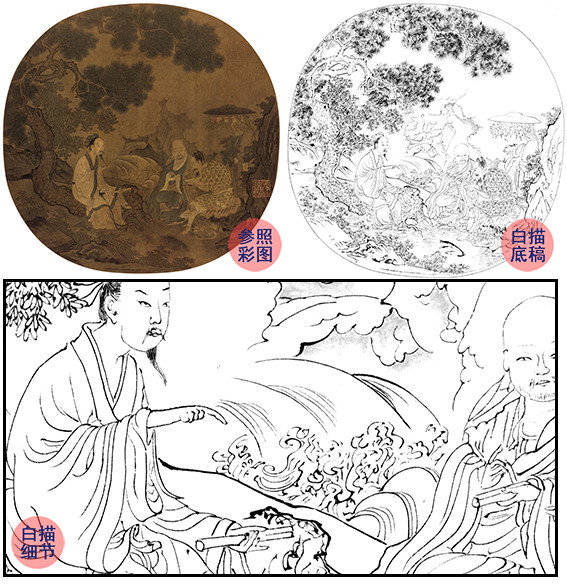 宋画人物小品白描底稿-佚名-《三教论道图》-多种白描尺寸可选-GD25