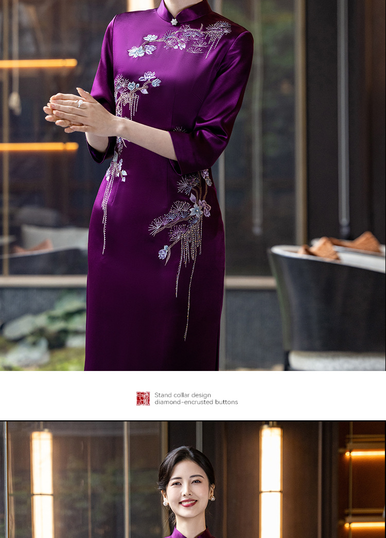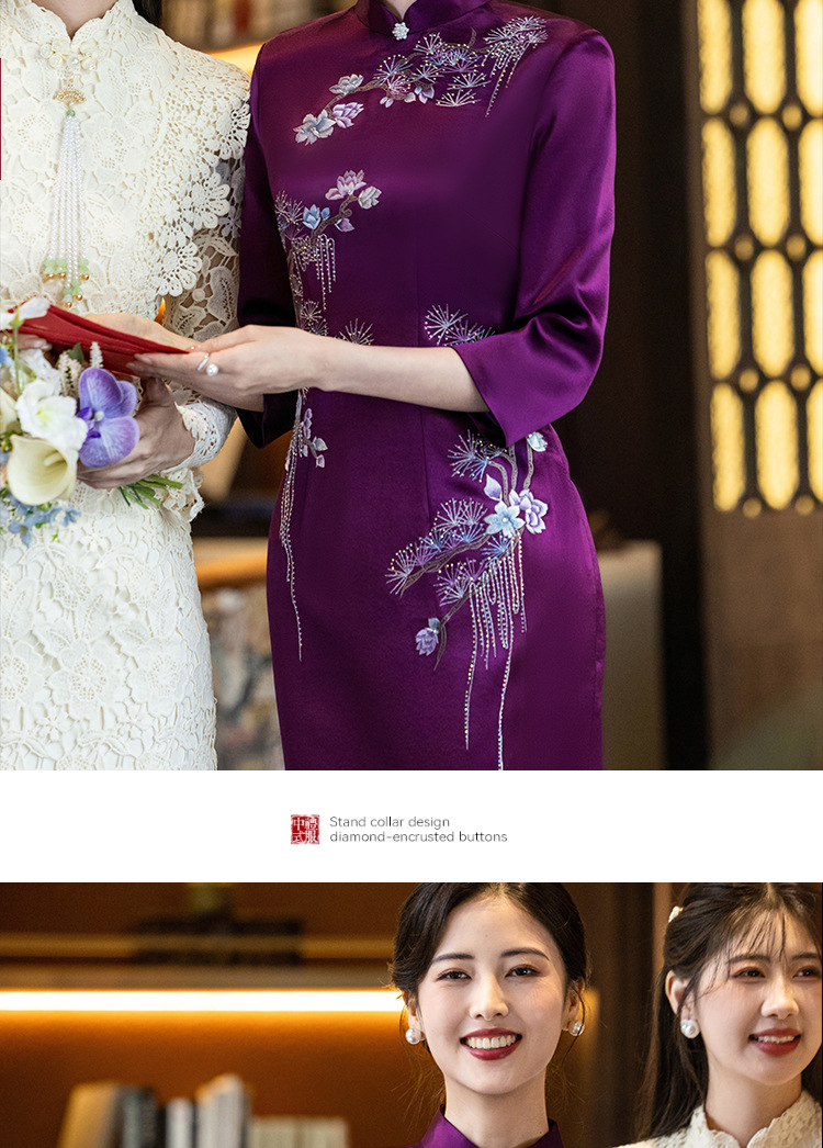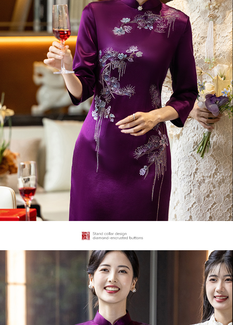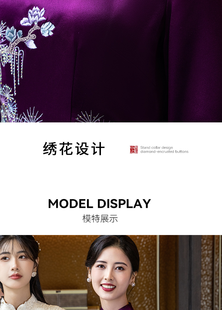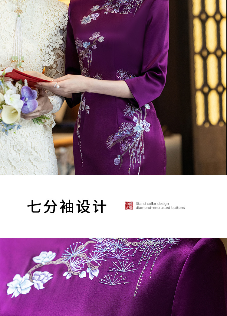 LHS C67新中式妈妈装婚宴刺绣旗袍裙平时可穿