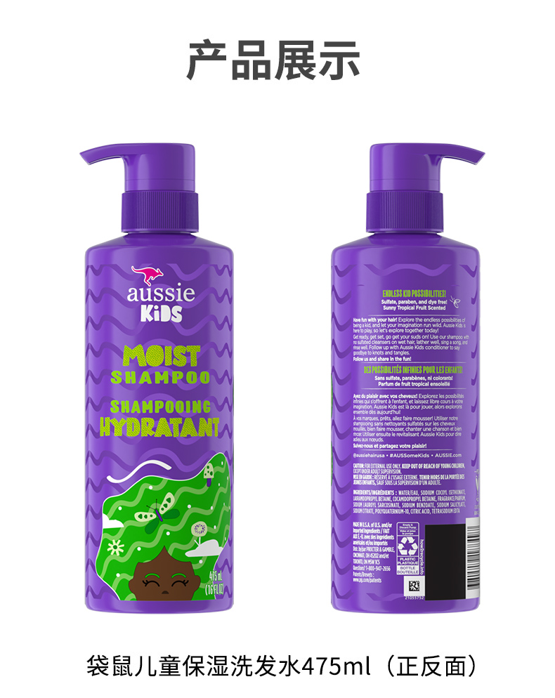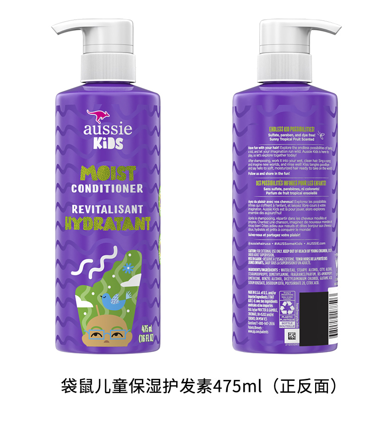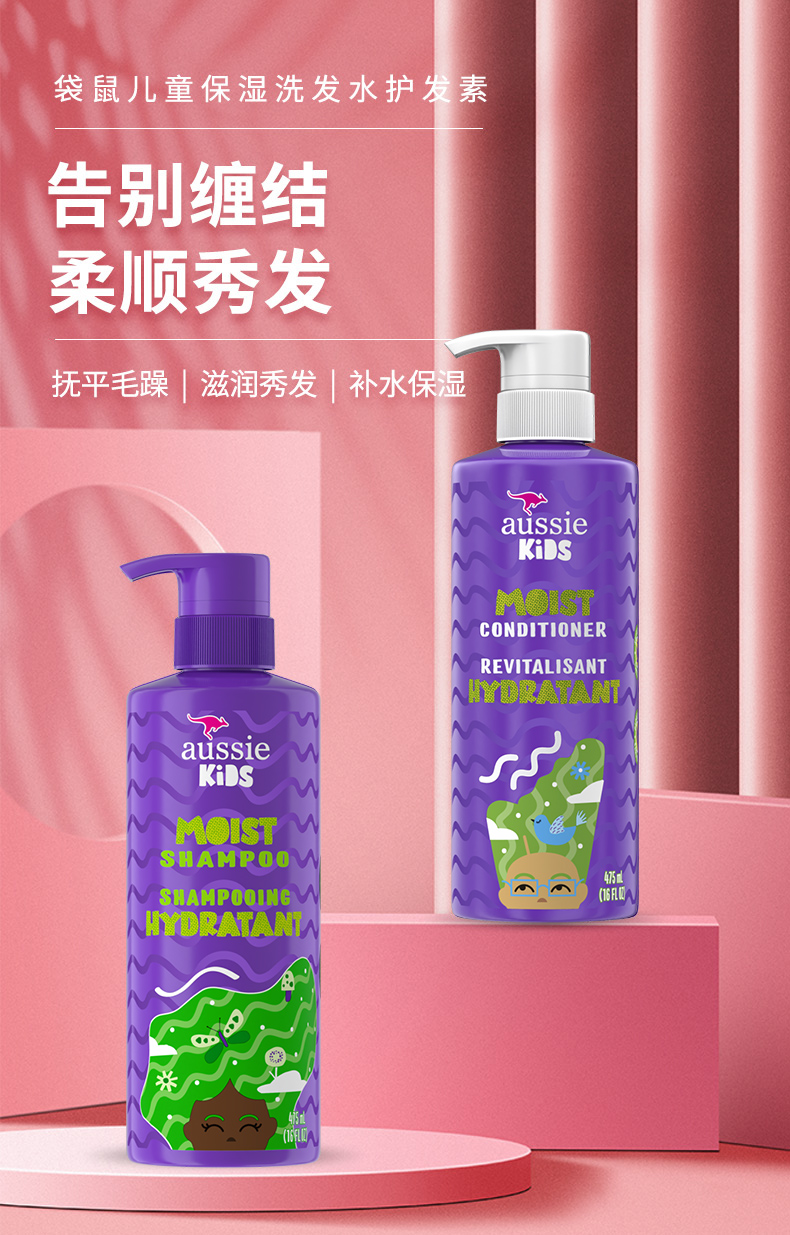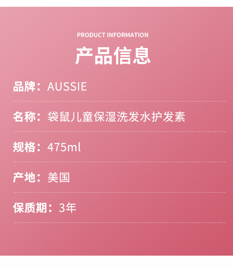 【保税直邮 义乌海关】澳丝袋鼠(AUSSIE)儿童保湿洗发水护发素抚平毛躁保湿滋润无硅油