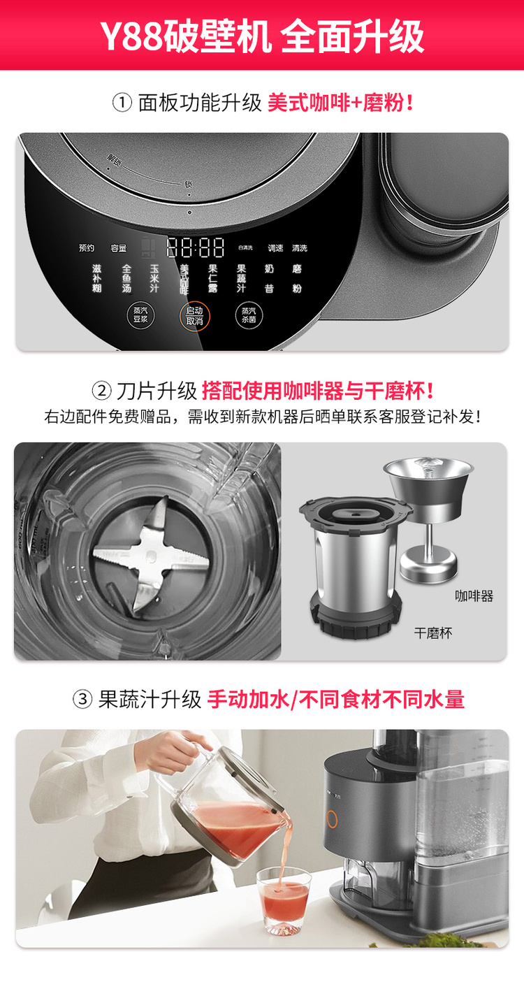 厂家直发-九阳(Joyoung)破壁机、料理机、榨汁机、豆浆机Y88(天空系列)
