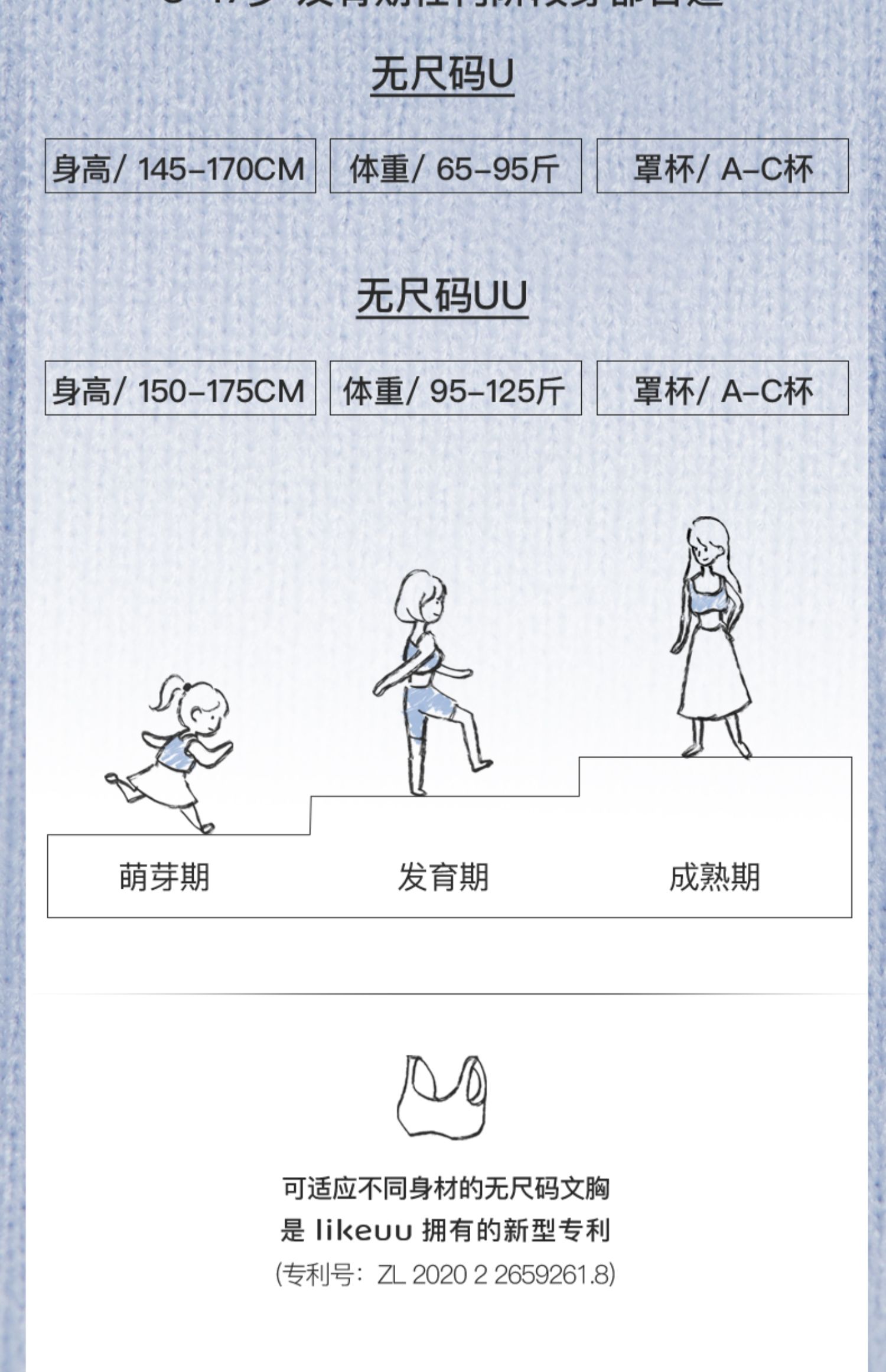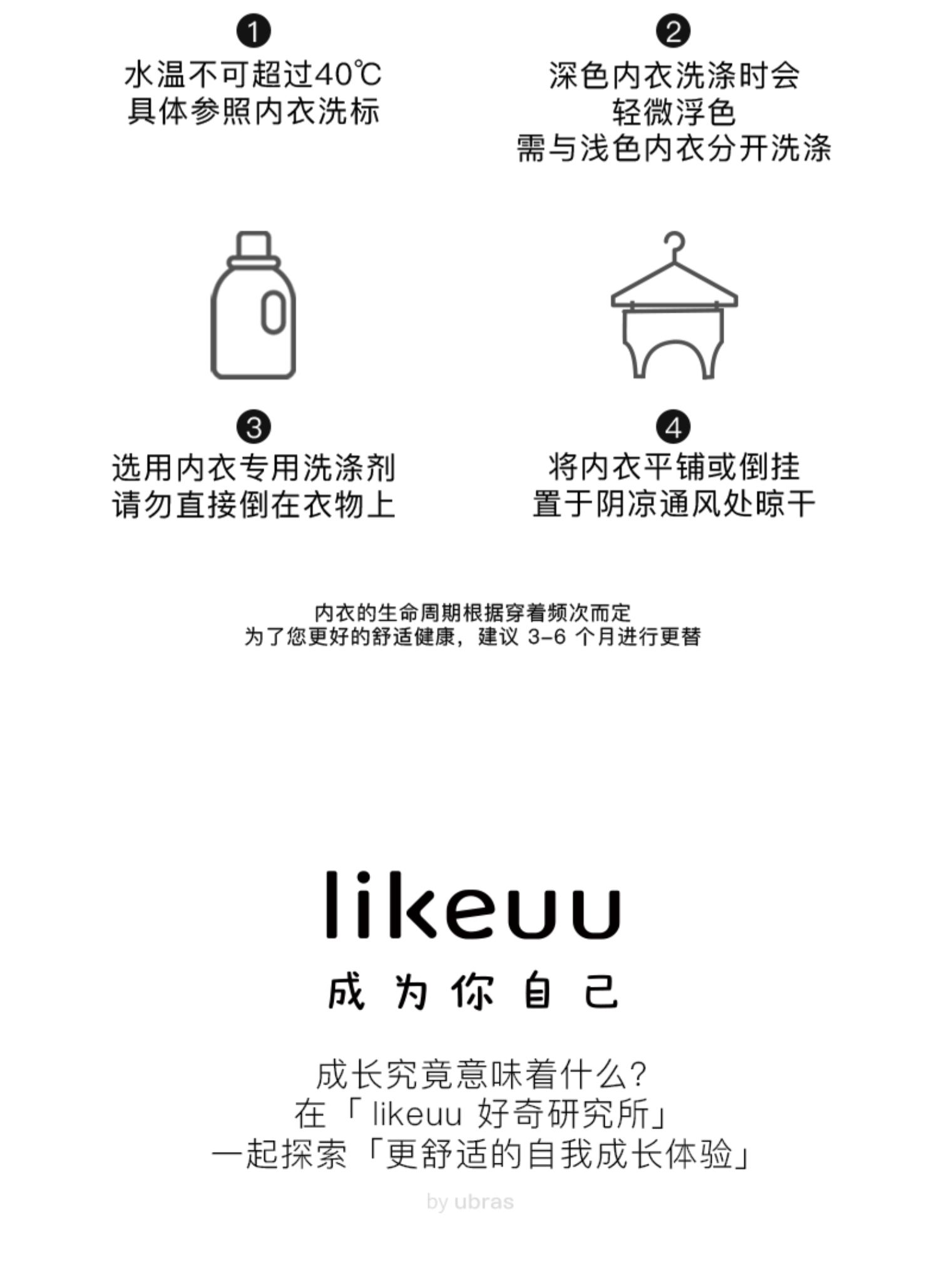 - likeuu是专注于为6~15岁的青少年创造柔软、无束缚的成长体验,以好奇心为灵感的成长发育期贴身衣物品牌。likeuu的产品覆盖内衣、内裤、保暖衣、家居服、运动等品类。