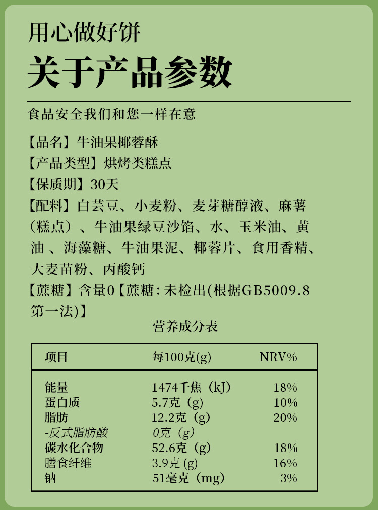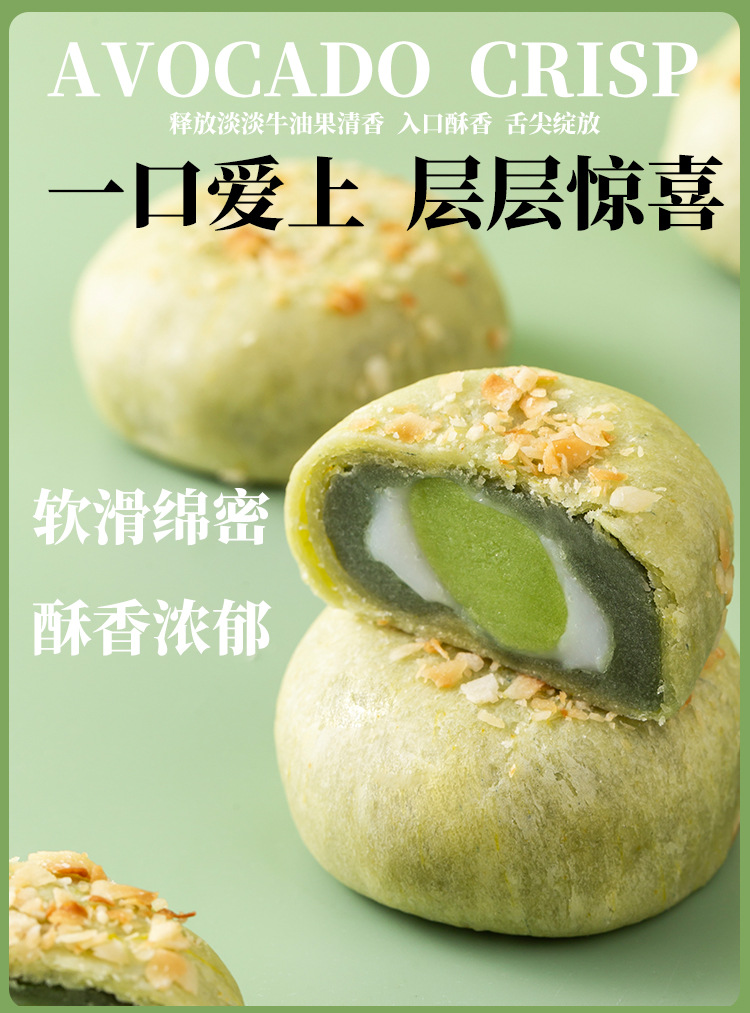 口口酥香,层层惊喜【0添加蔗糖!0添加反式脂肪酸】牛油果椰蓉酥绿豆无蔗糖酥香麻薯网红糕点早餐代餐零食。ha