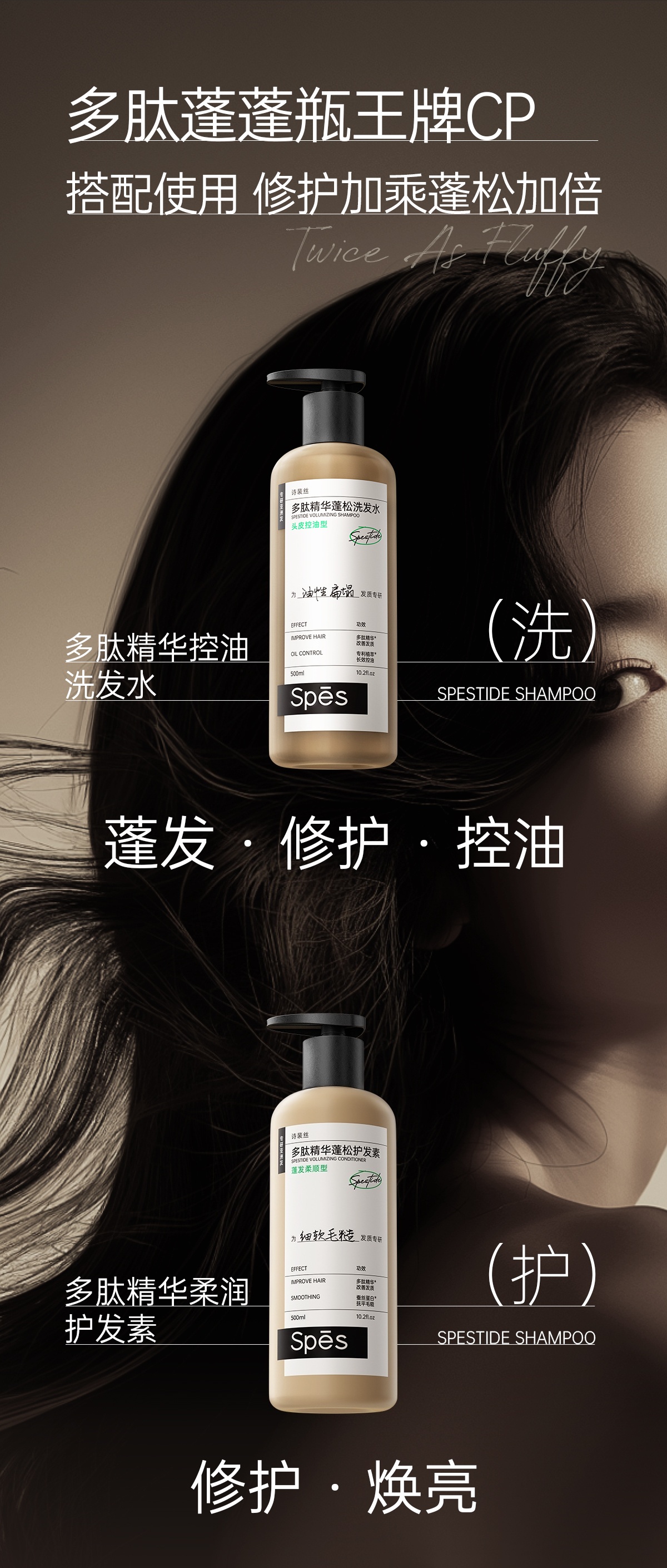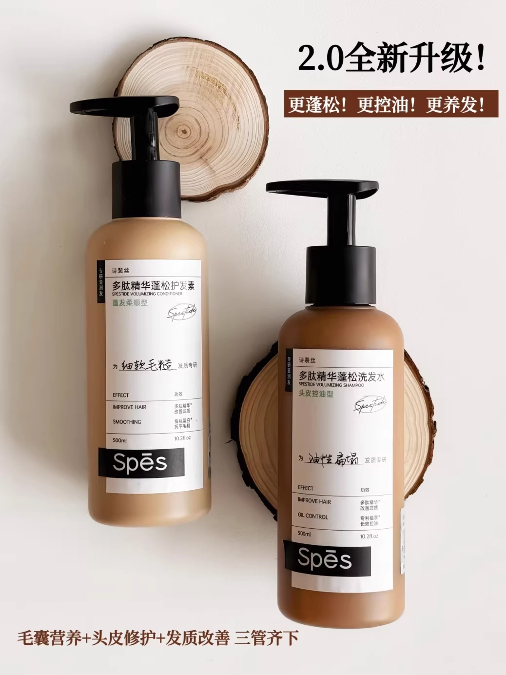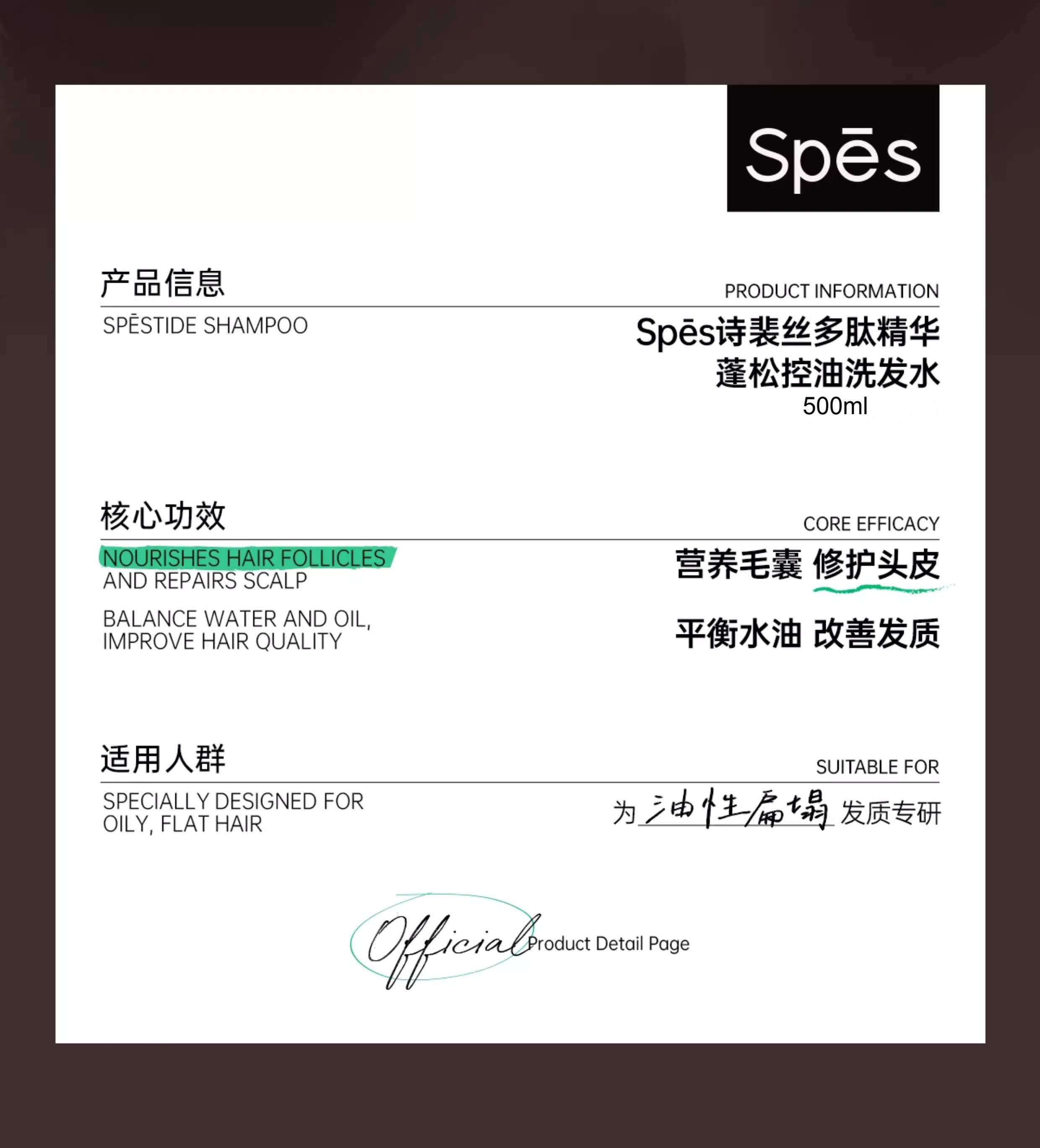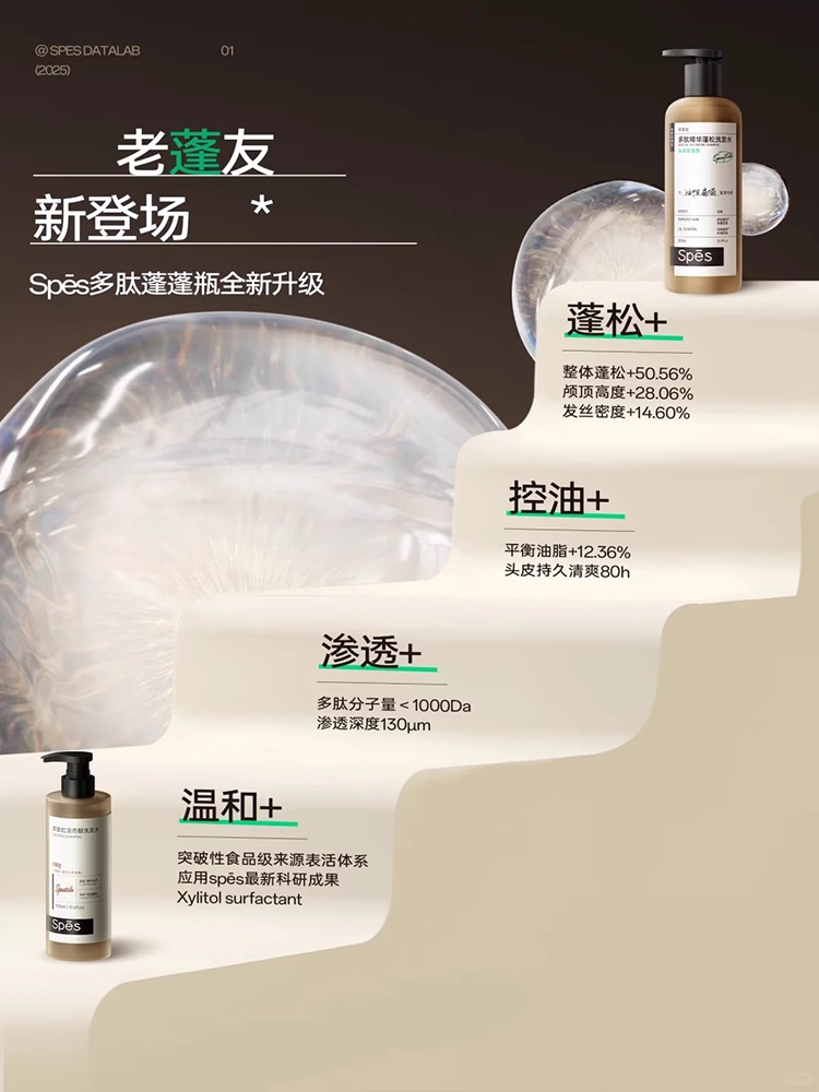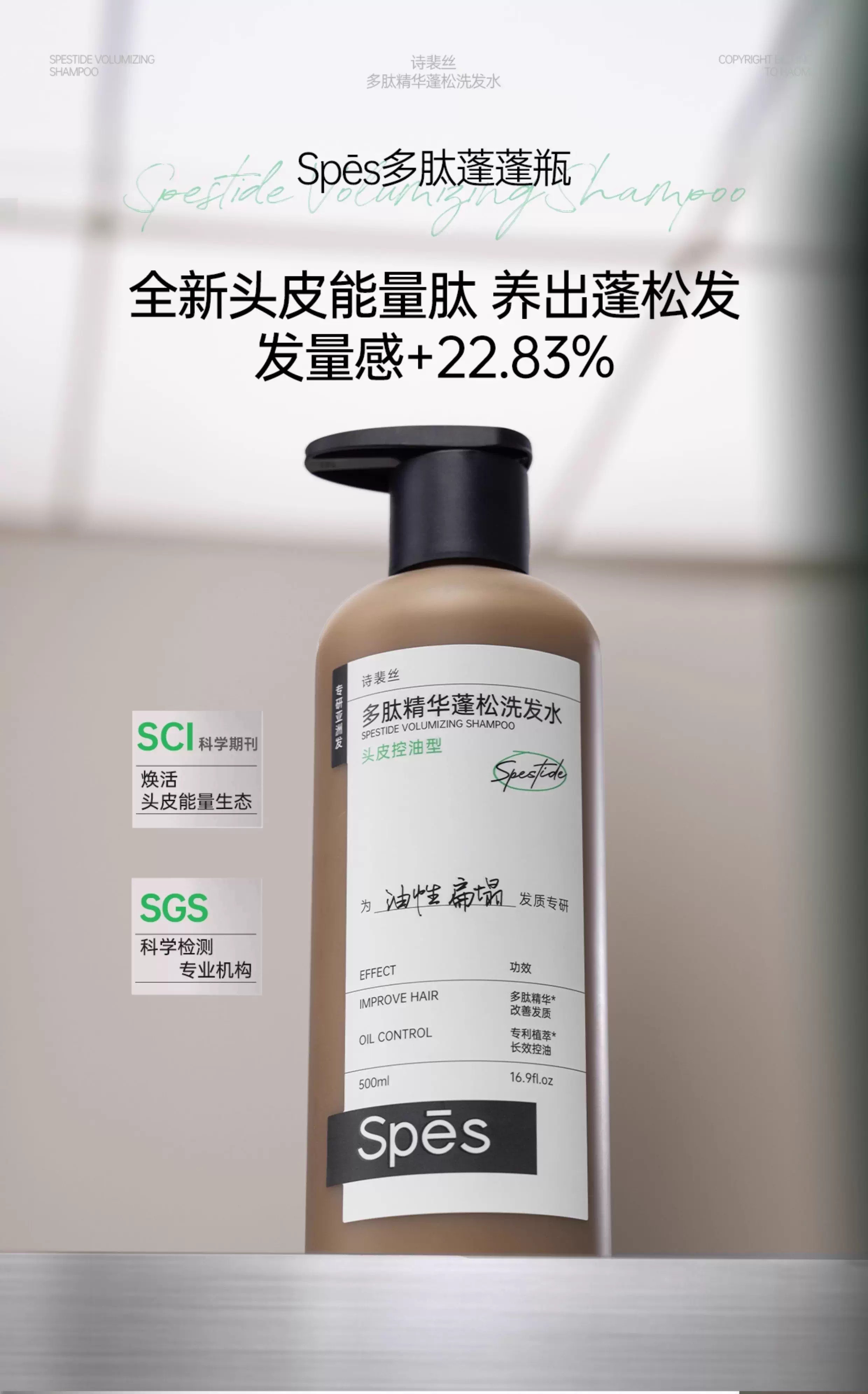 秀发自然轻盈 | Spes诗裴丝 多肽精华蓬松洗发水 个人清洁护理洗头 500ml/瓶