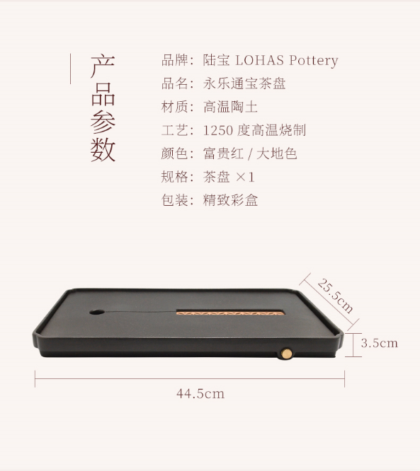 【彼达思】陆宝陶瓷旗舰店永乐通宝茶盘家用客厅储水茶盘陶盘居家茶具茶席盘