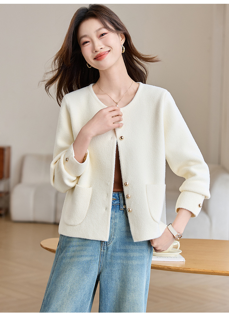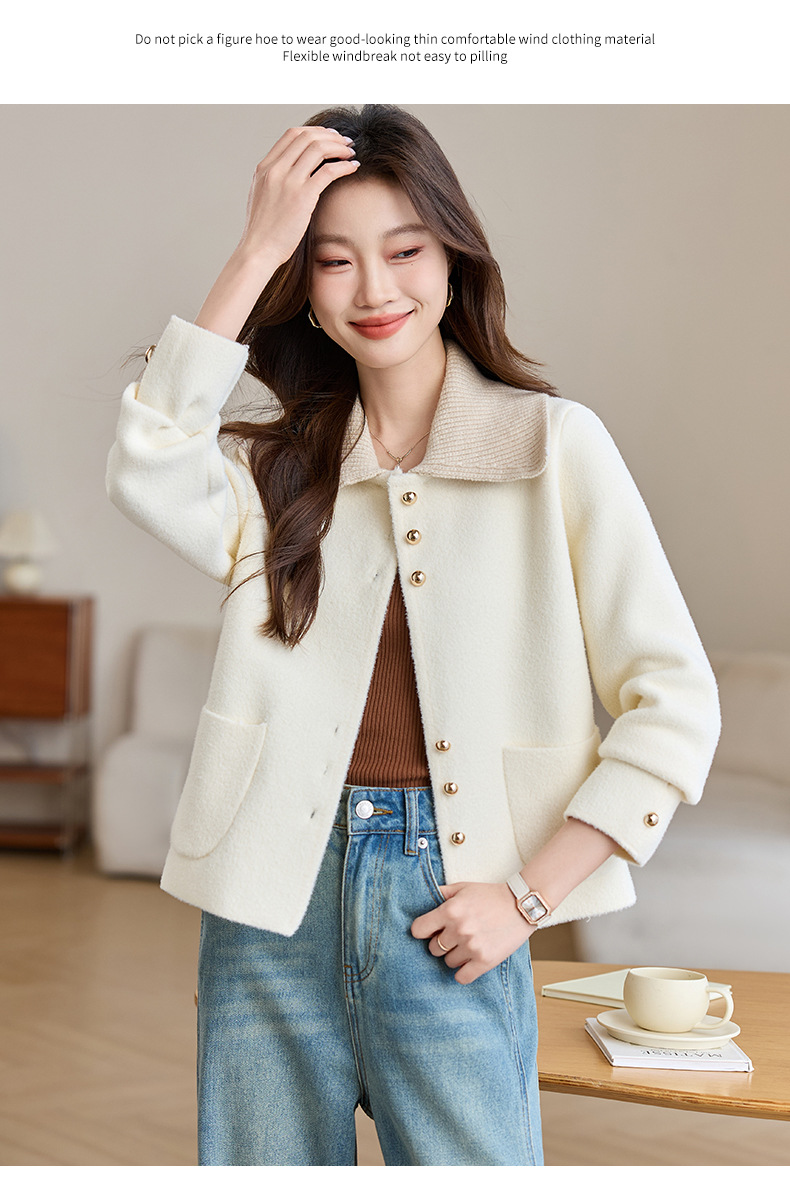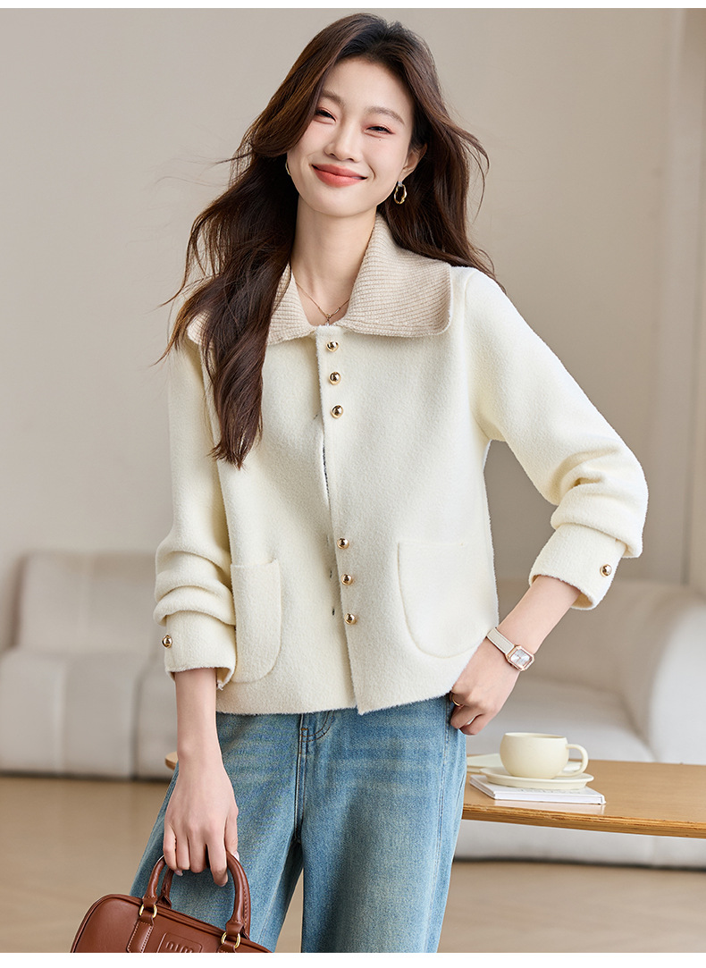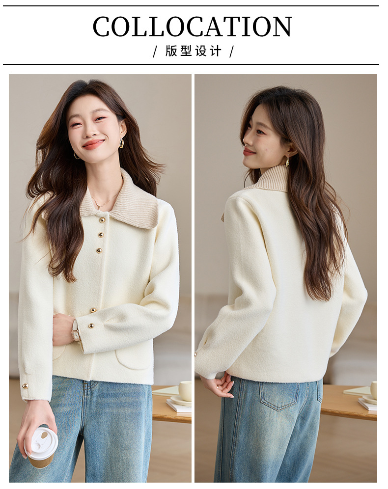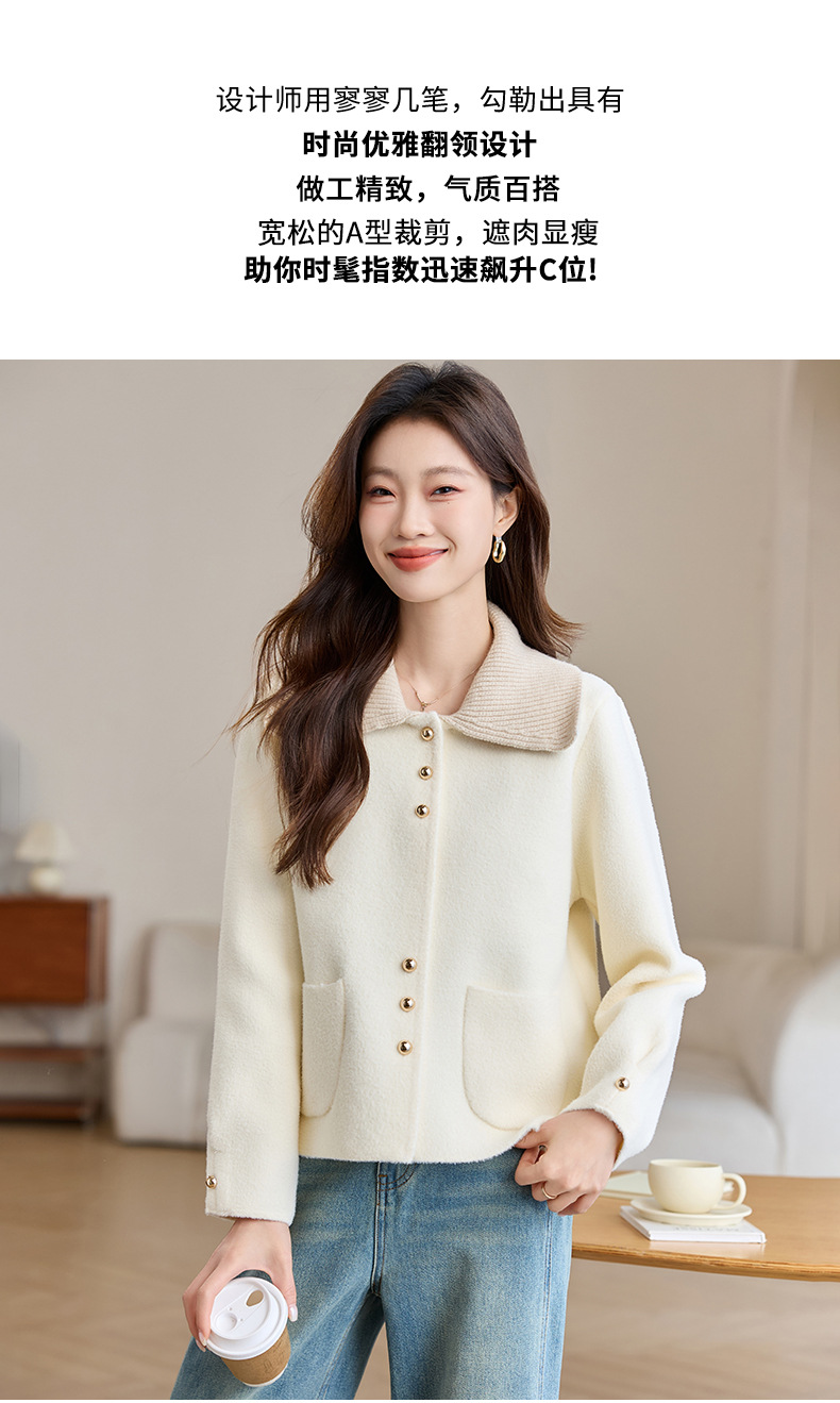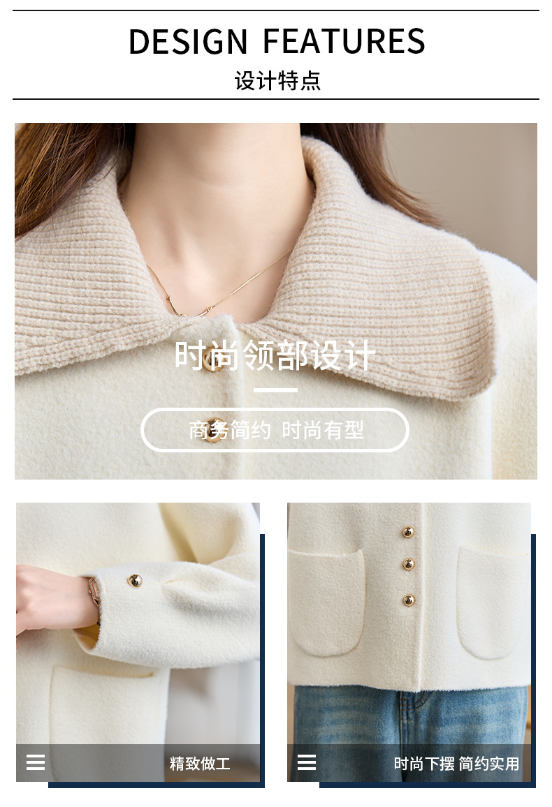 CC-XFY-2510新款春秋可拆卸领小个子短外套女宽松休闲珍珠绒开衫上衣2025春季