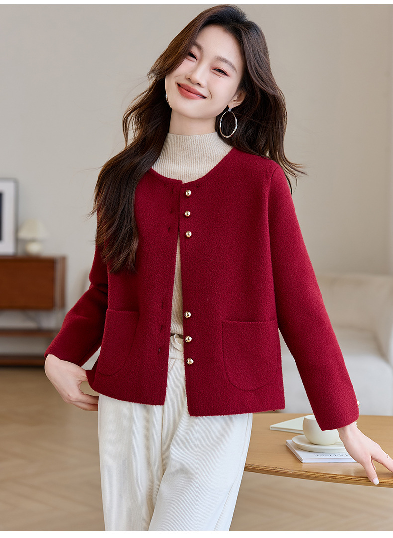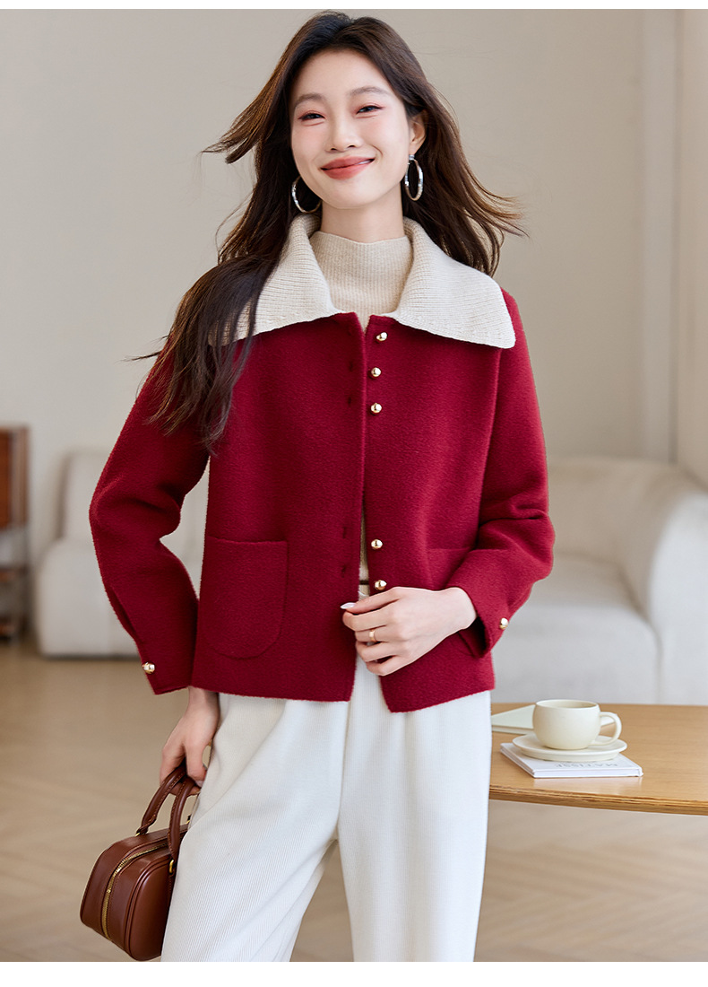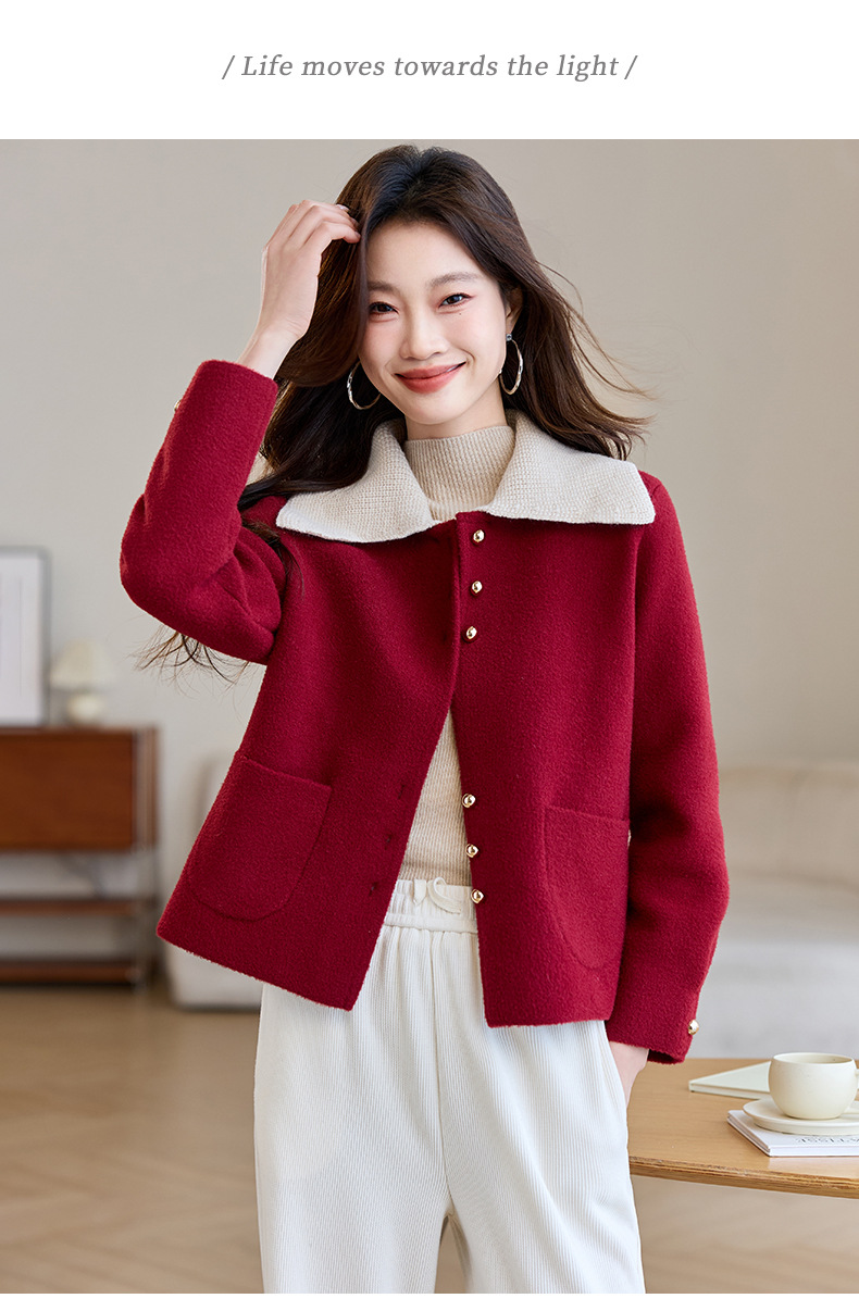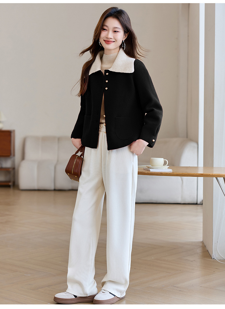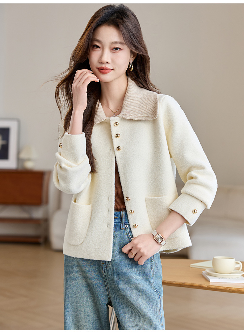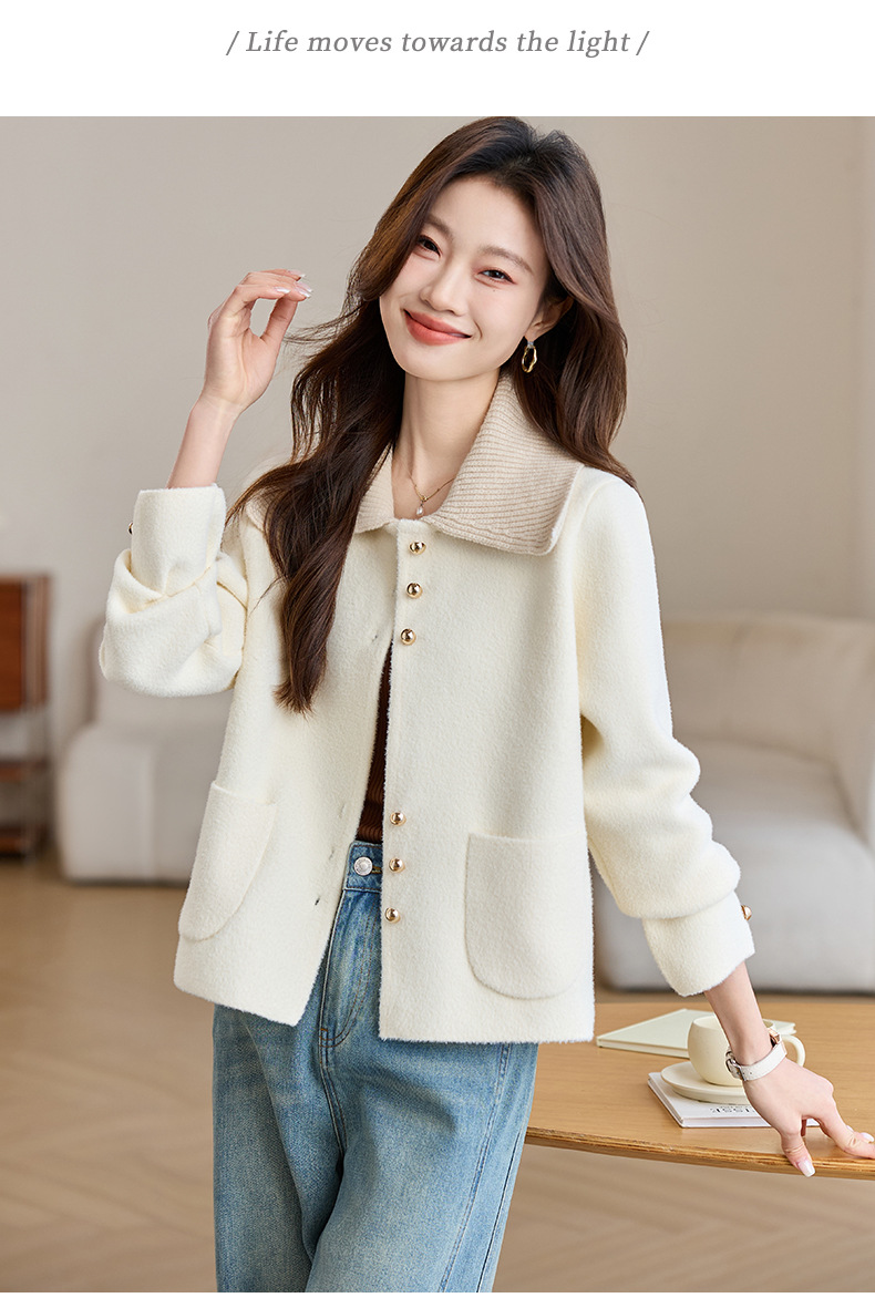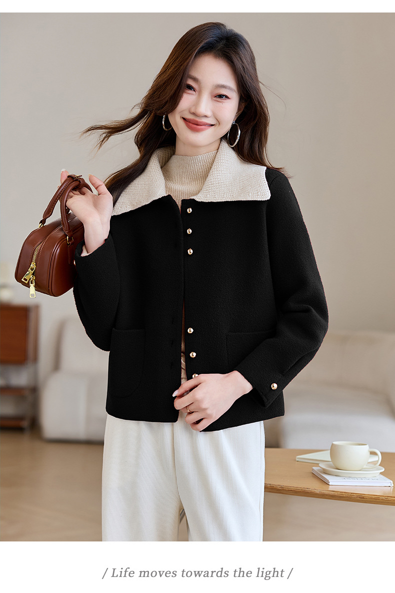 CC-XFY-2510新款春秋可拆卸领小个子短外套女宽松休闲珍珠绒开衫上衣2025春季
