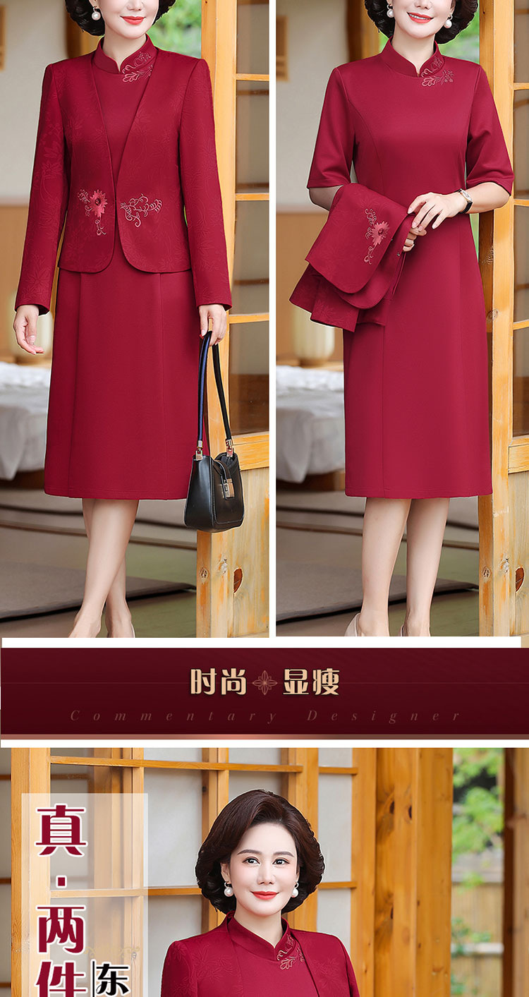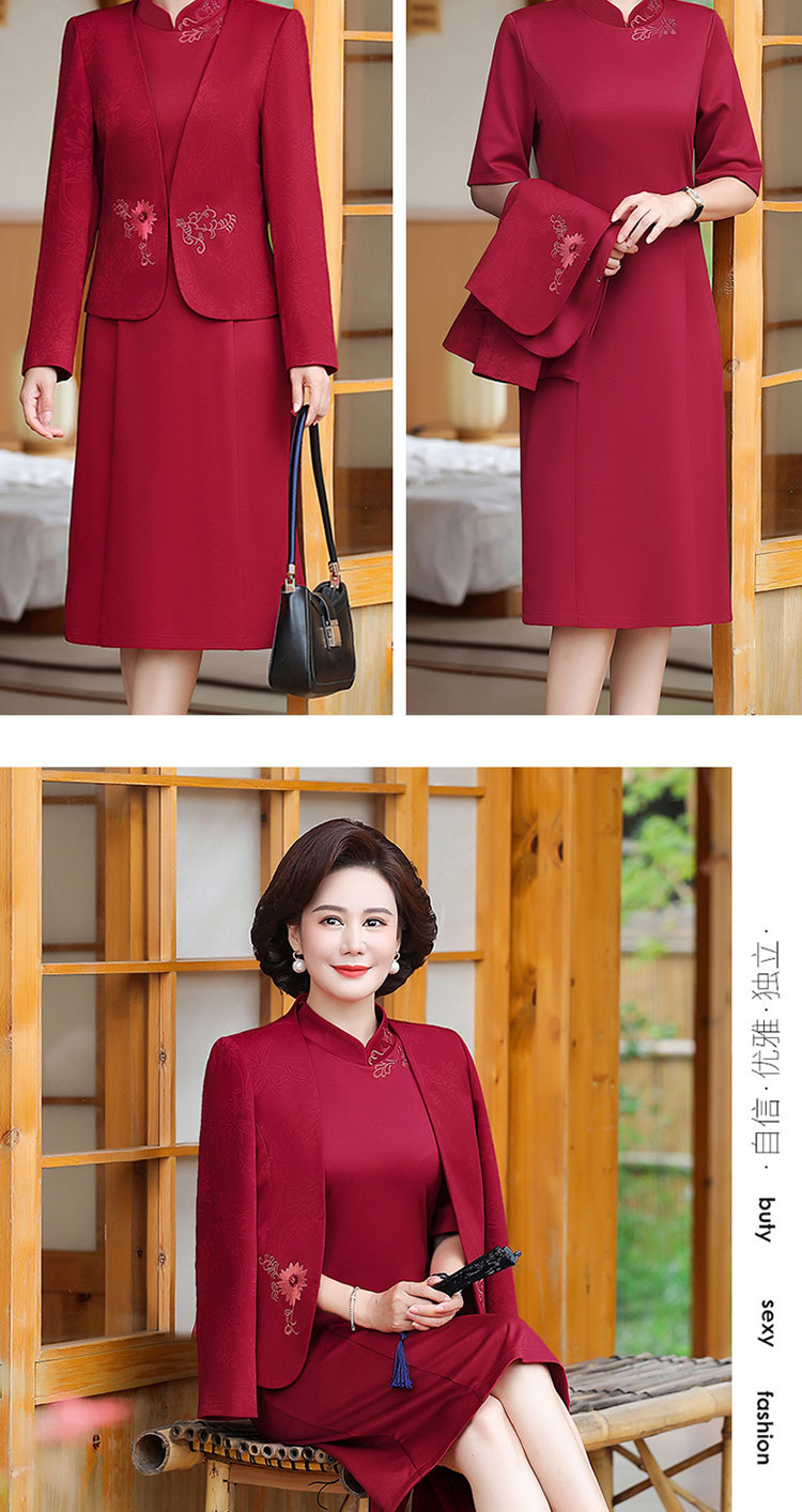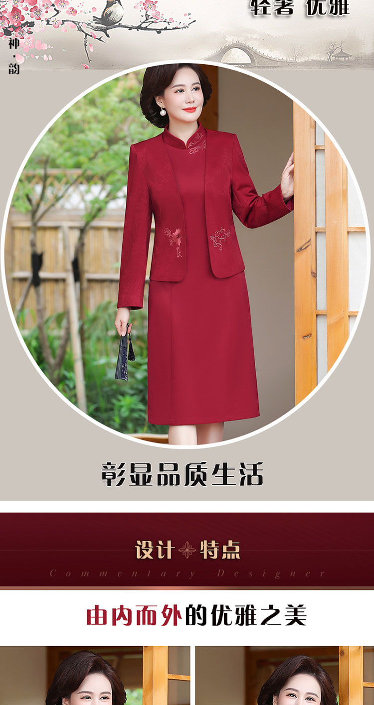 MCRL9299喜婆婆婚宴装2024新款妈妈秋装连衣裙两件套装贵夫人披肩改良旗袍