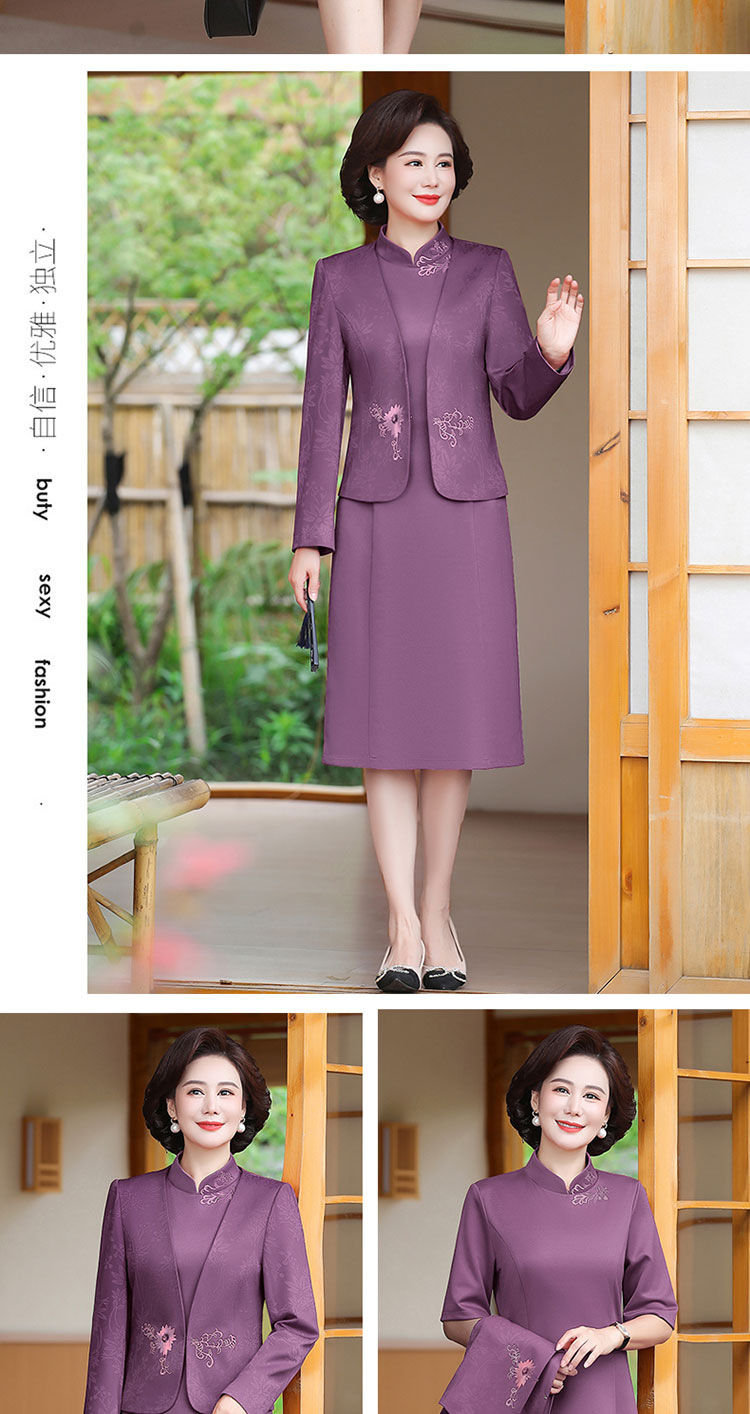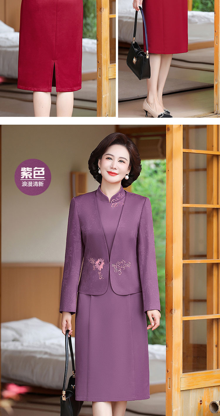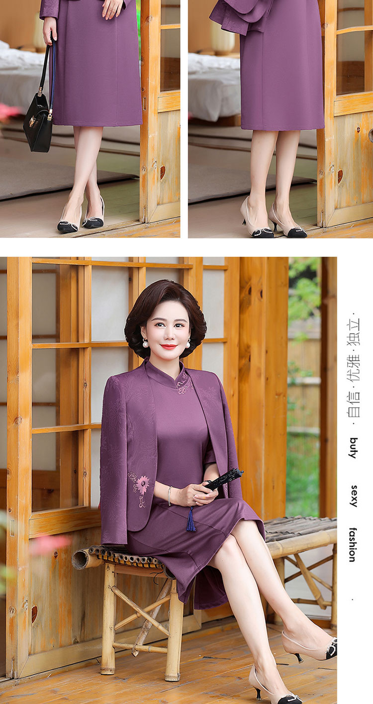 MCRL9299喜婆婆婚宴装2024新款妈妈秋装连衣裙两件套装贵夫人披肩改良旗袍