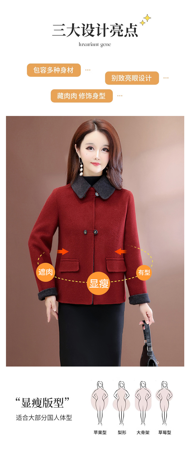 QYM 25ZB911-Y时尚双面大衣时尚气质休闲毛呢外套 商品图4