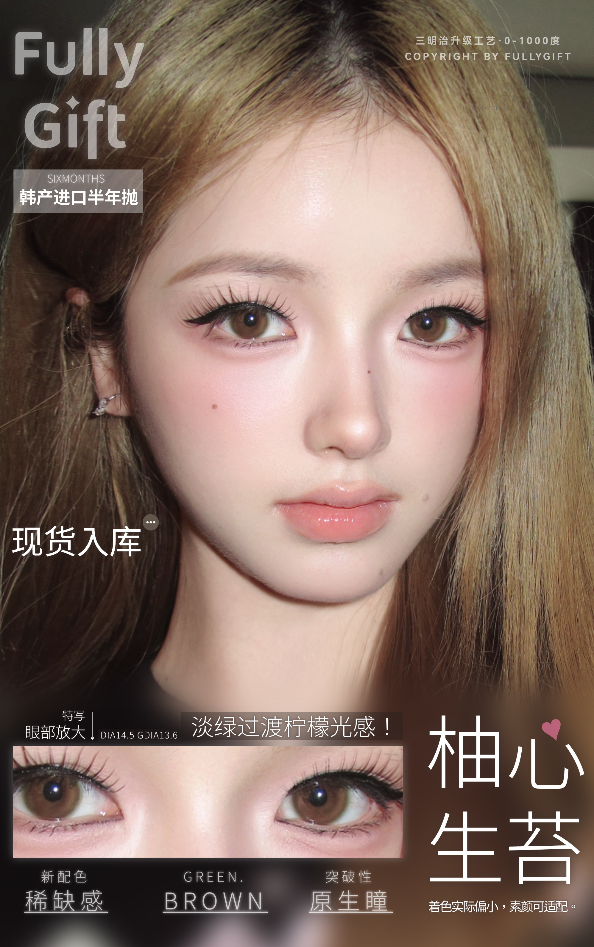 FULLYGIFT半年抛隐形眼镜 桃心回甘/柚心生苔    一副/2片 商品图0