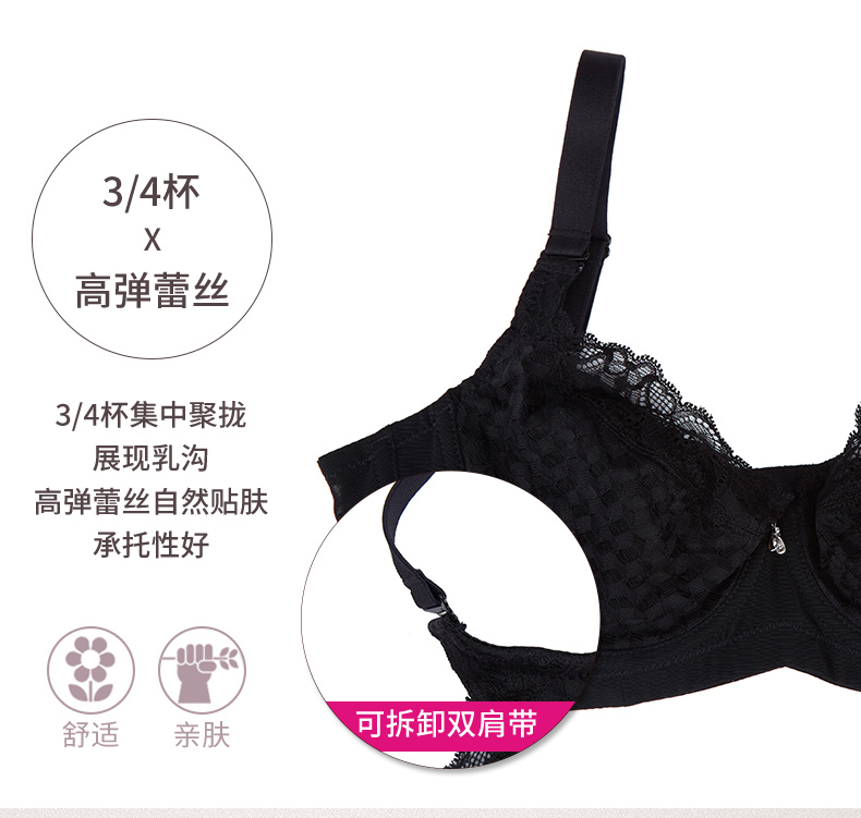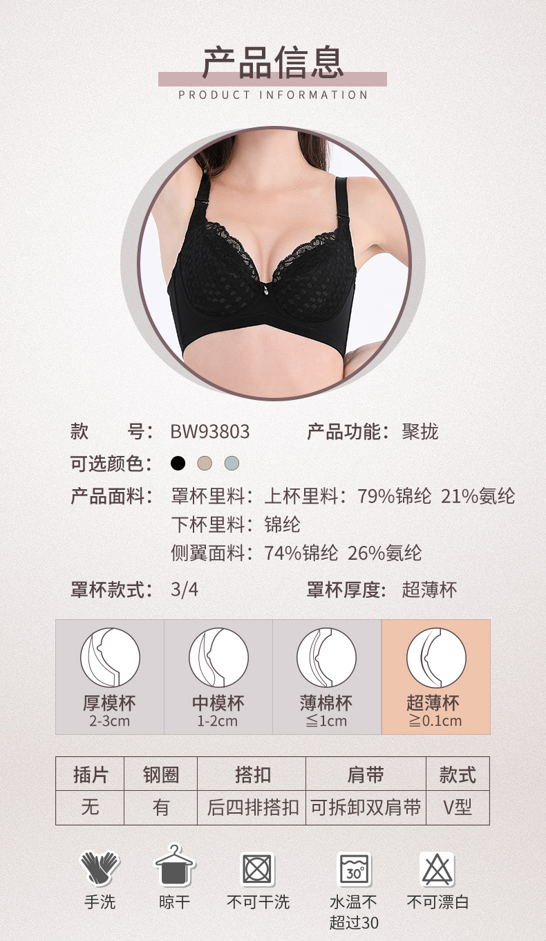 贝佳人正品薄杯可拆肩带内衣简约蕾丝有钢圈支撑文胸BW93803