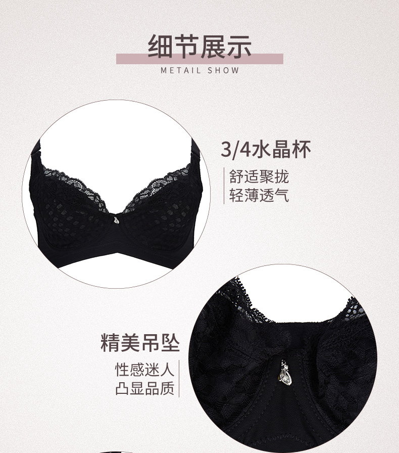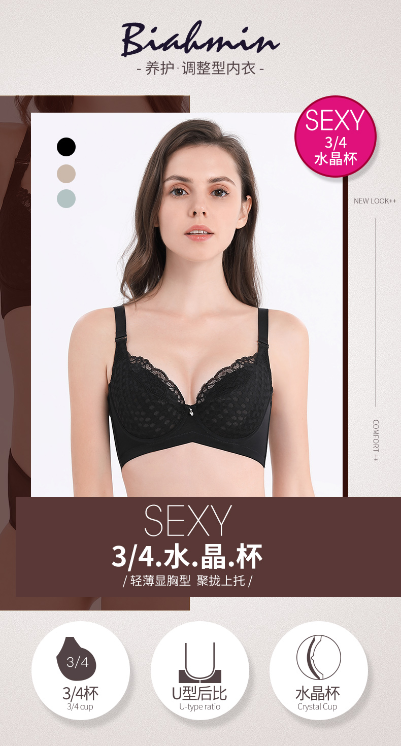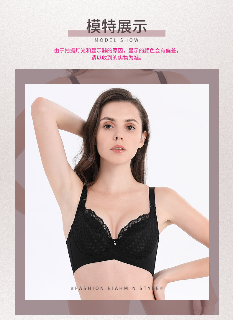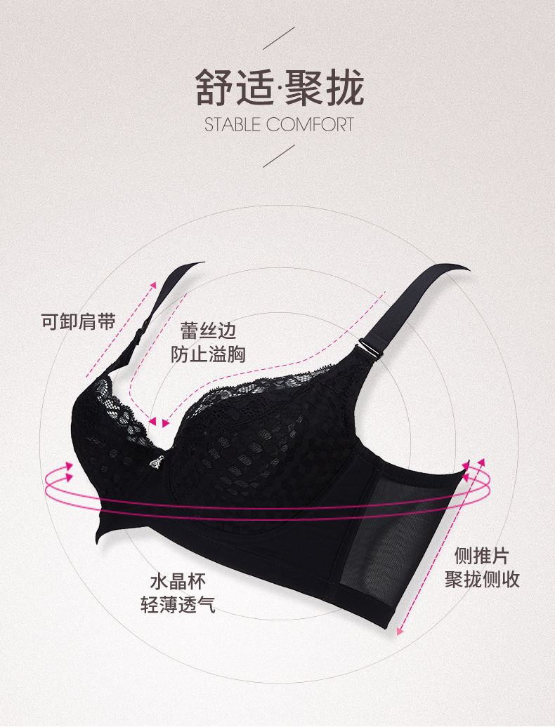 贝佳人新品大码文胸性感蕾丝软钢圈上托侧收调整型文胸女BW902008