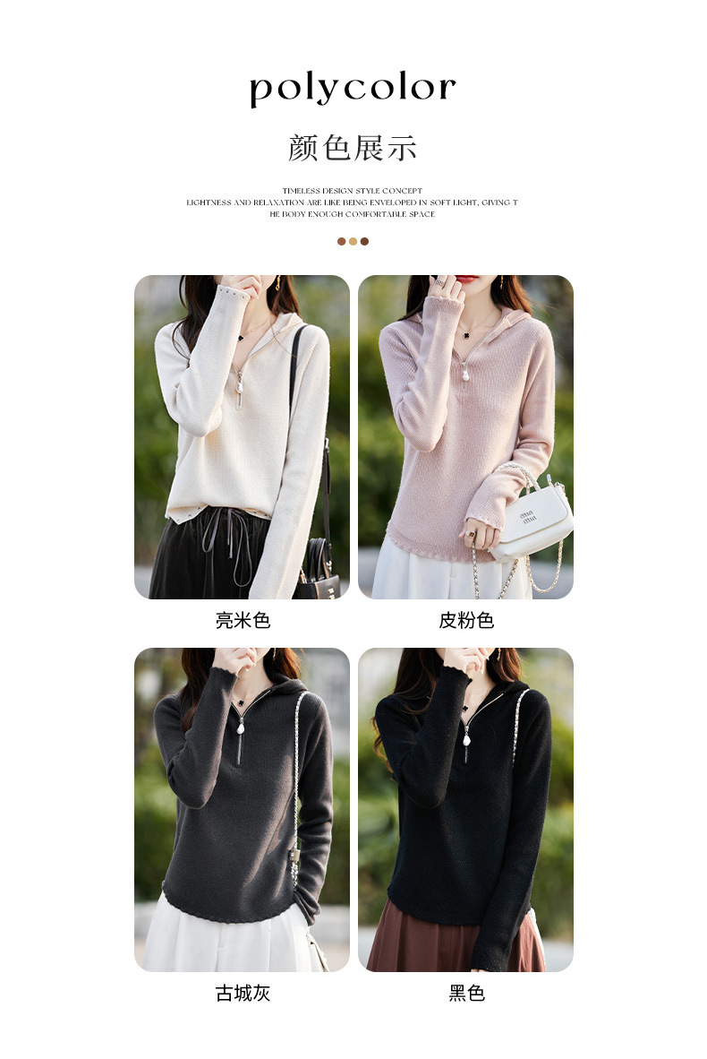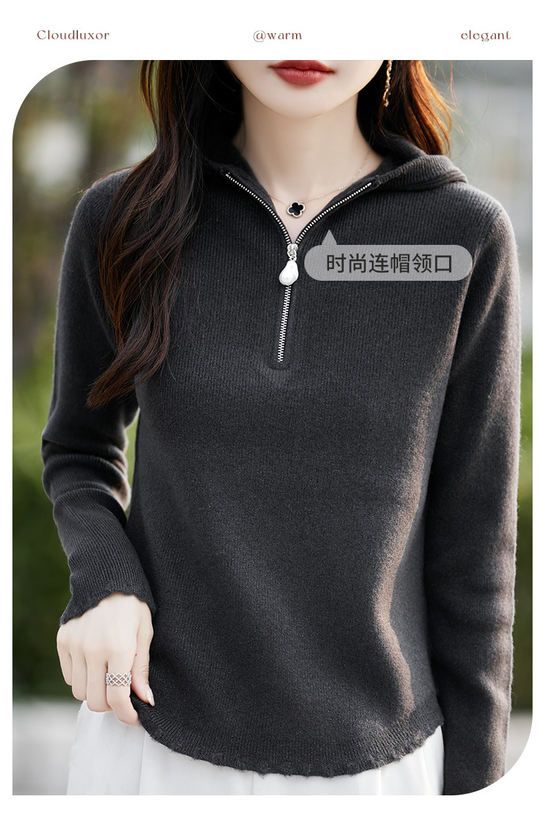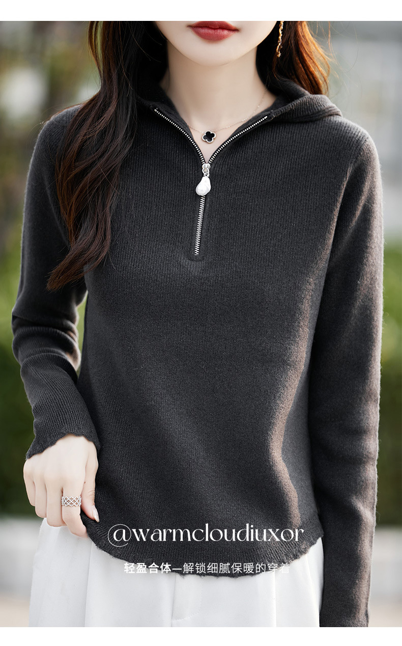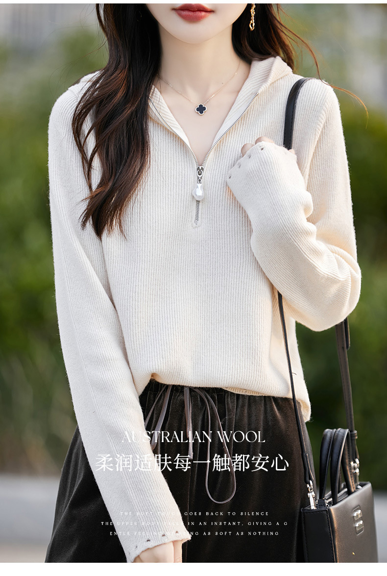 丁摩 100%纯羊毛连帽针织衫半拉链上衣 PY-5102