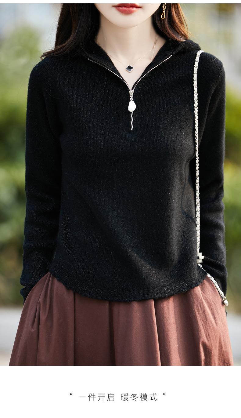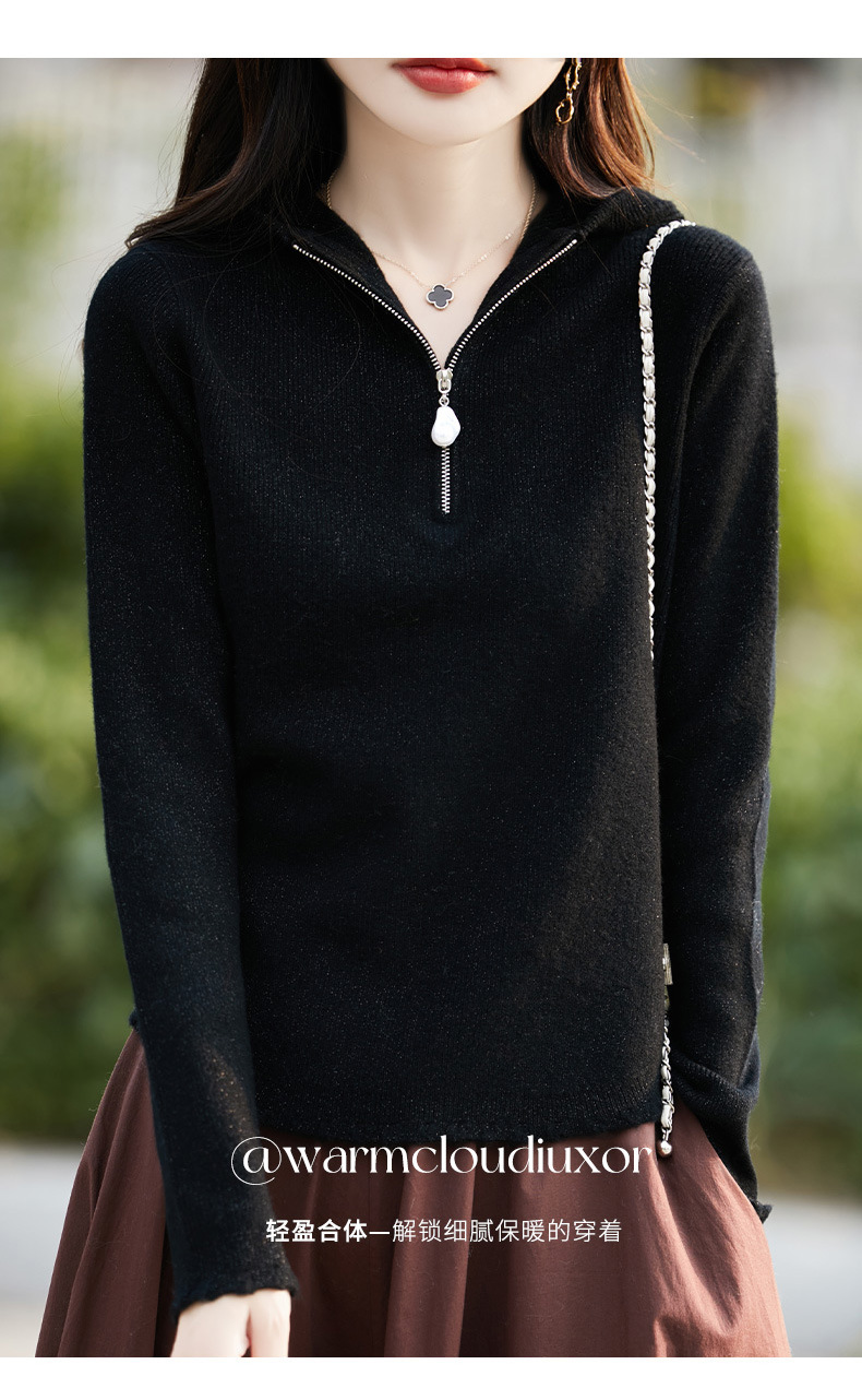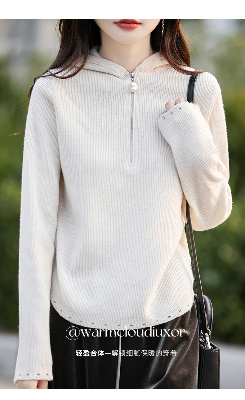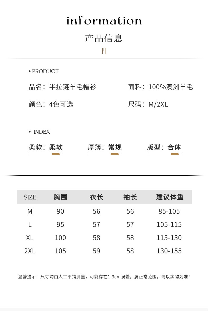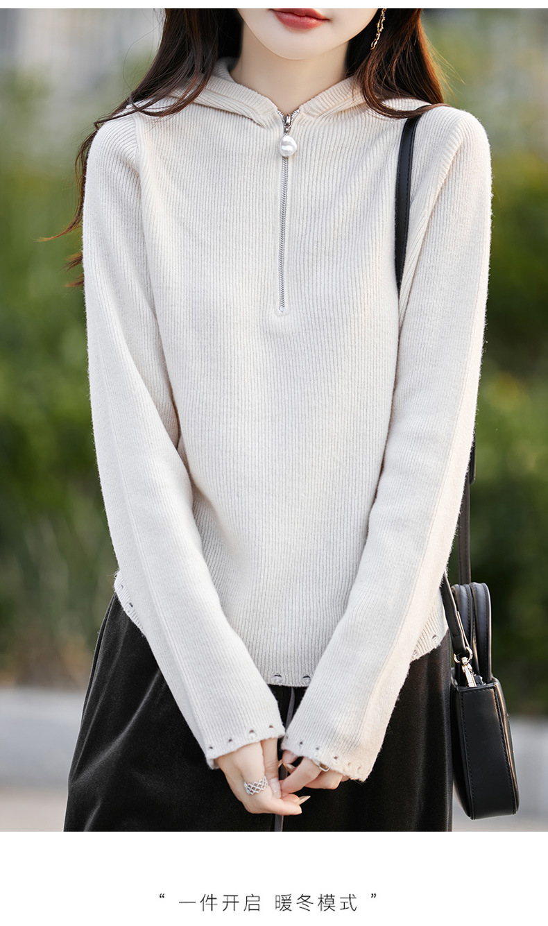 丁摩 100%纯羊毛连帽针织衫半拉链上衣 PY-5102