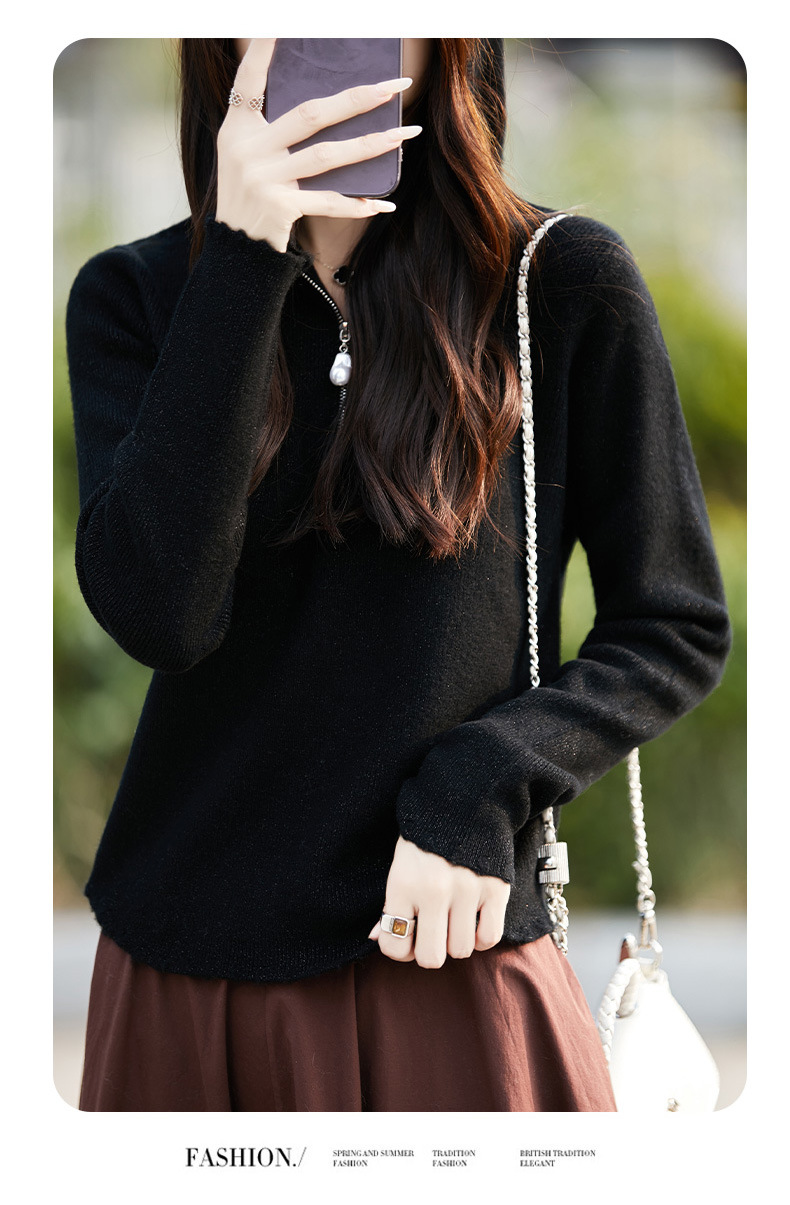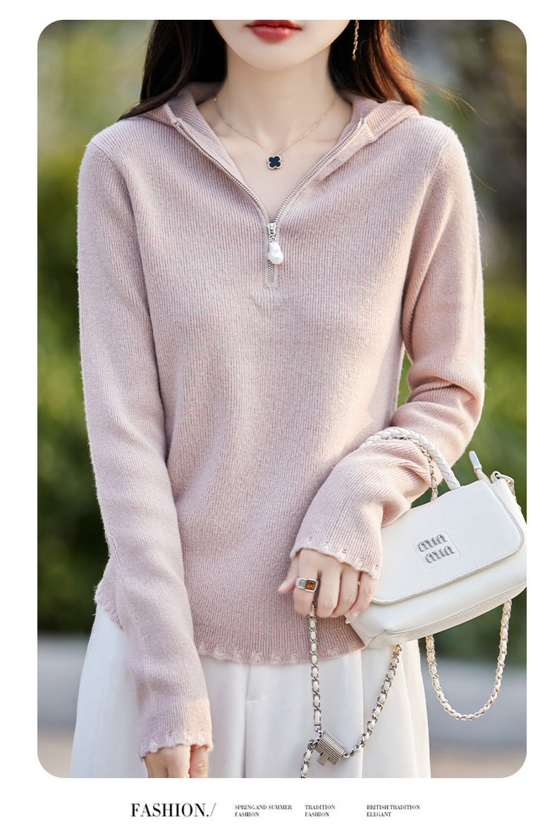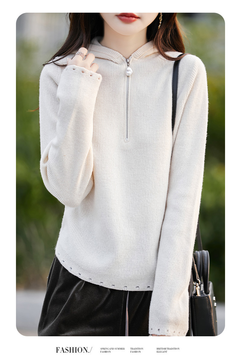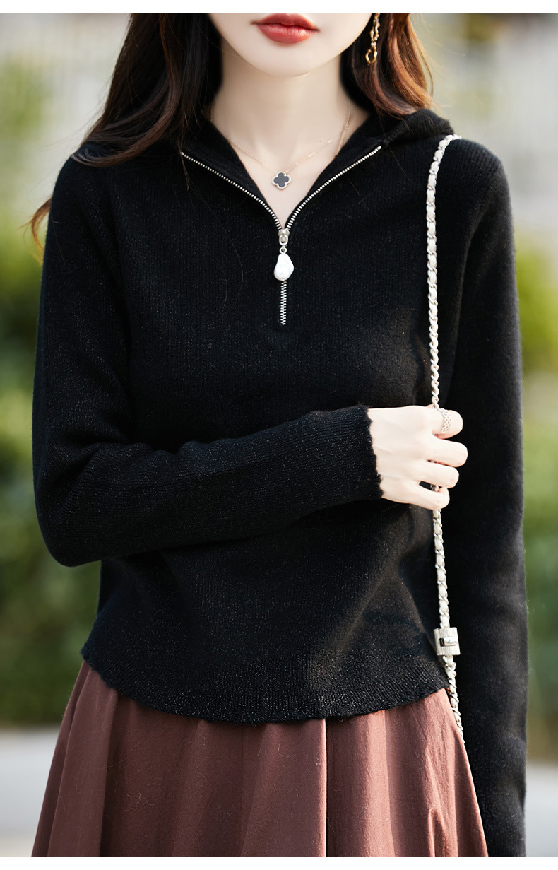 丁摩 100%纯羊毛连帽针织衫半拉链上衣 PY-5102