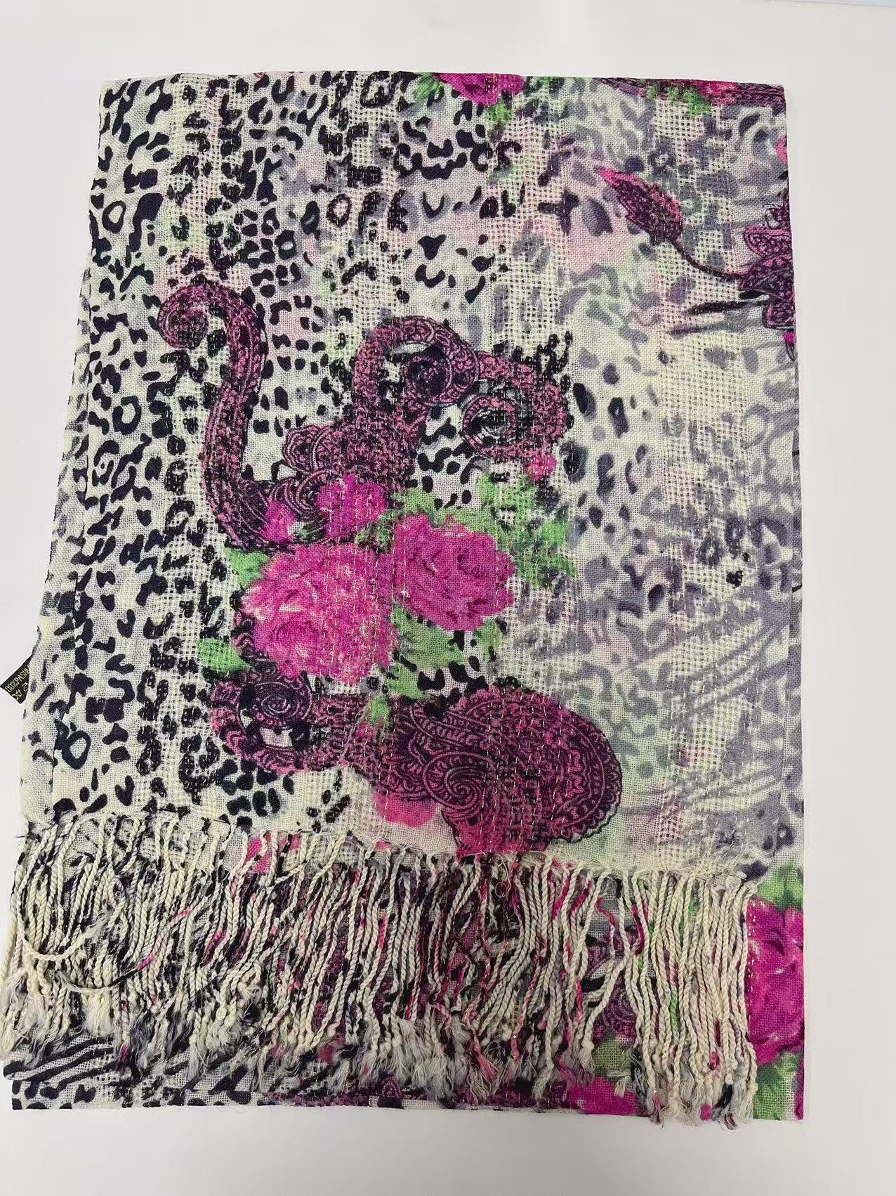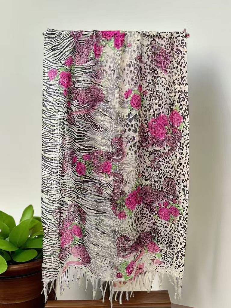 {特卖}100%羊毛围巾花型十九斑马纹花卉~喜出