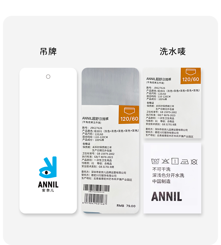 男童平角底裤五件装夏季新款安奈儿童装JB627626