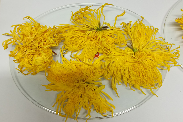 金丝皇菊原产江西修水县,因南宋诗人黄庭坚将修水药菊进贡朝廷,被皇上赐名金丝皇菊而得名。金丝皇菊味甘苦,性微寒;有散风清热、清肝明目和解毒消炎等作,现代医学研究表明,金丝皇菊富含黄酮素,具有抗疲劳抗衰老的神奇功效。