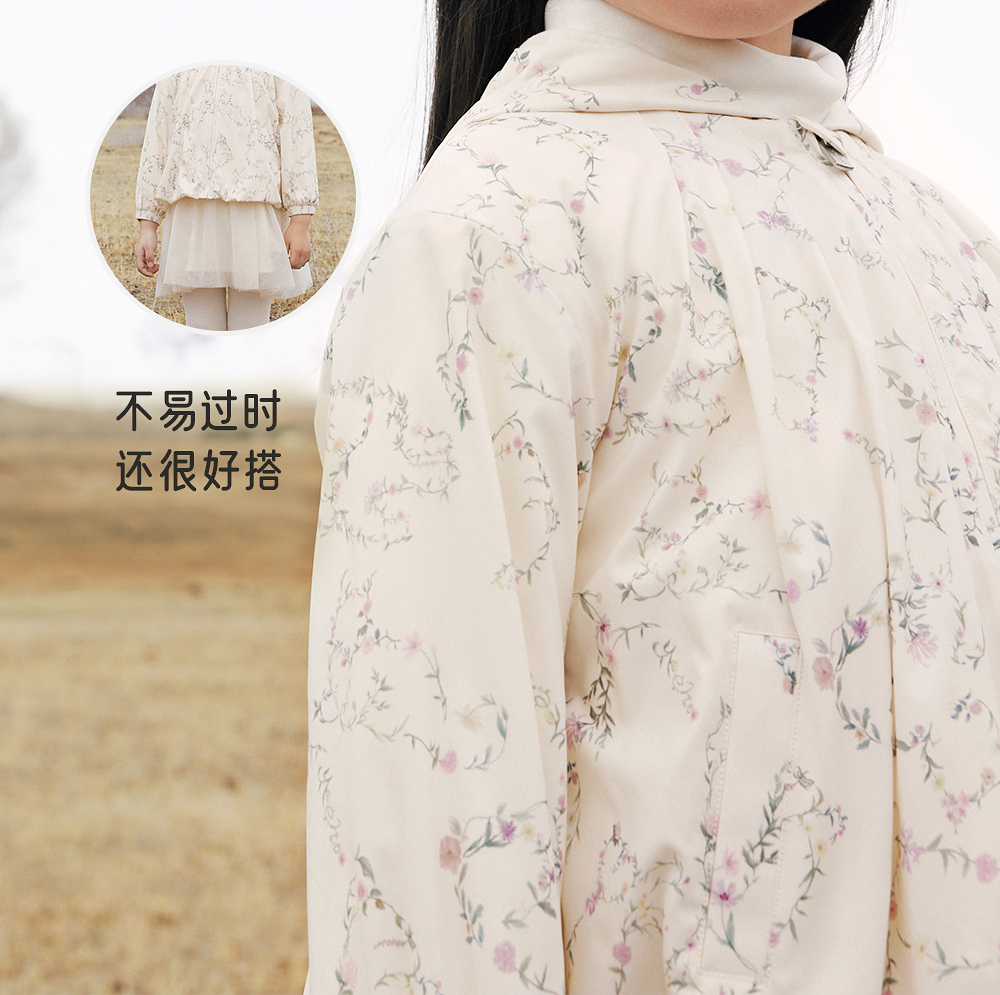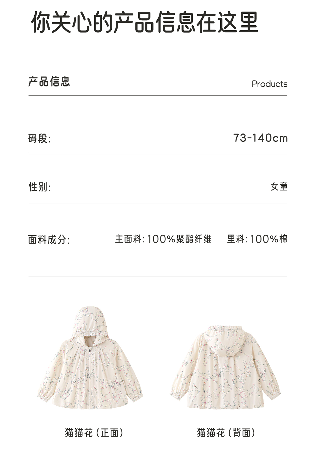 【商场同款】英氏女童连帽外套2025新款秋季印花长袖上衣童装