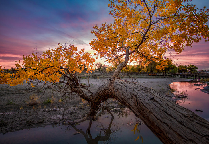 早上出发前往额济纳,下午到达私家胡杨林拍摄,这里胡杨林形态保护完好,人又少,好好的享受胡杨美景拍摄乐趣吧。晚上可以天气许可可拍摄星空胡杨