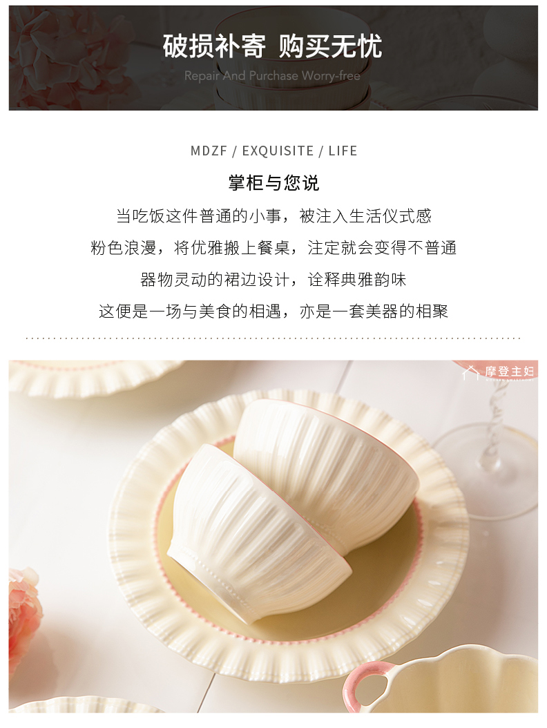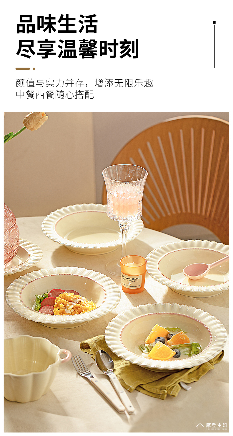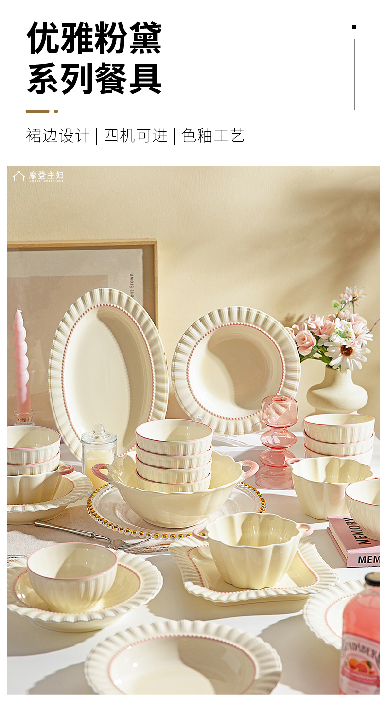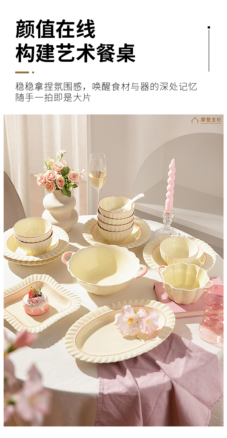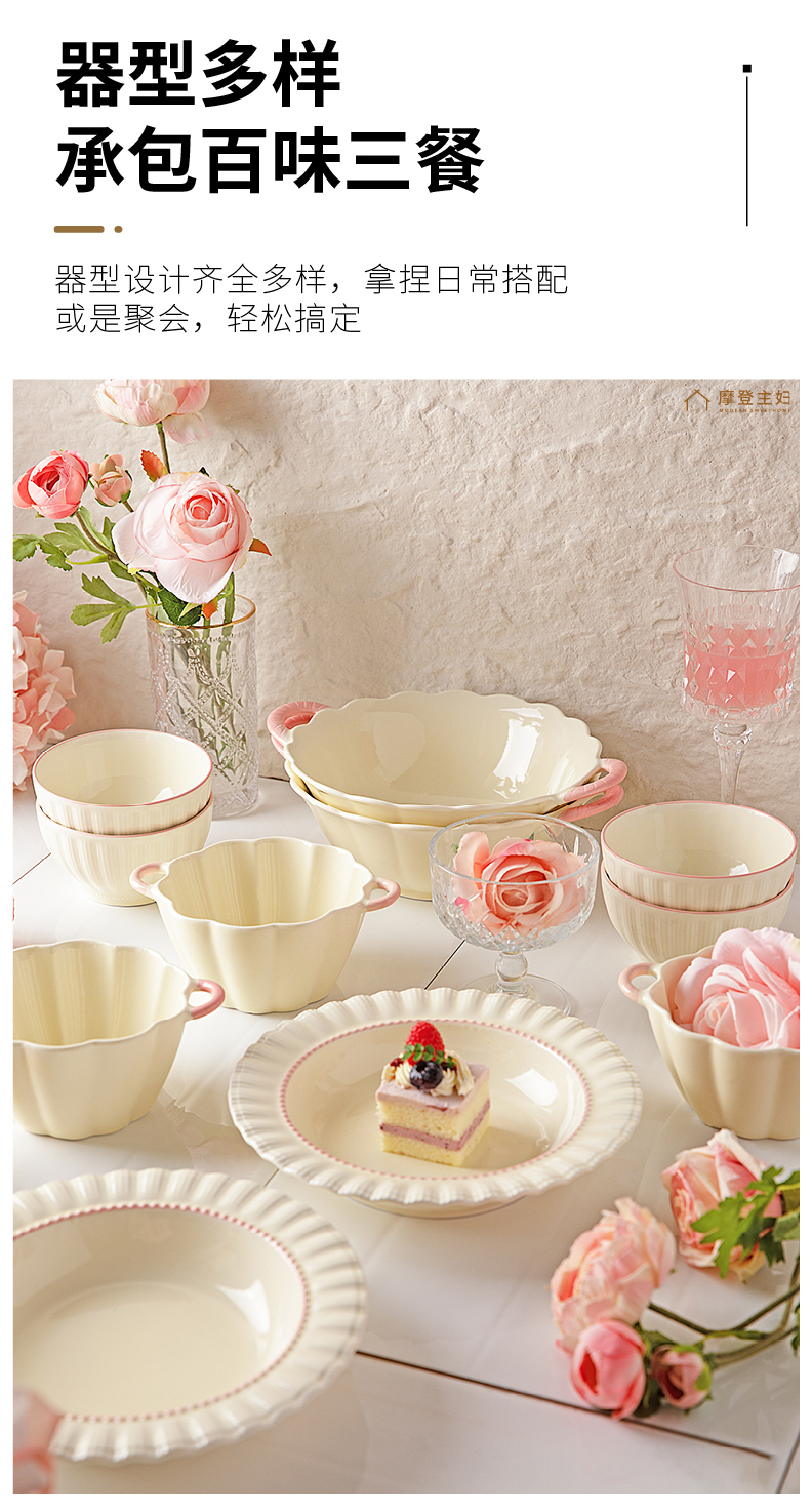 摩登主妇法式奶油风碗碟套装乔迁餐具家用2024新款高颜值新婚礼物