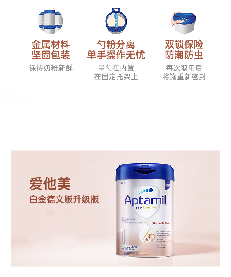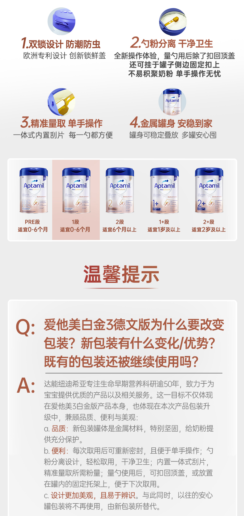 德国爱他美Aptamil婴幼儿配方奶粉白金版1段 0-6个月 800g/罐
