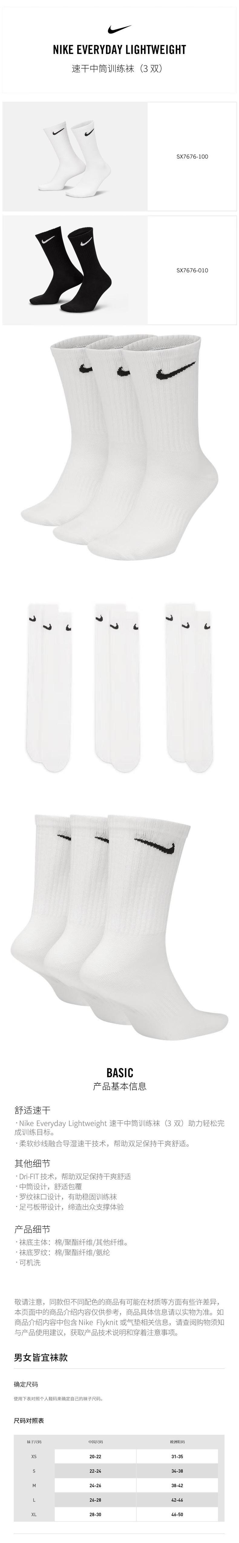 NIKE耐克 男女同款袜子 SX7676-100