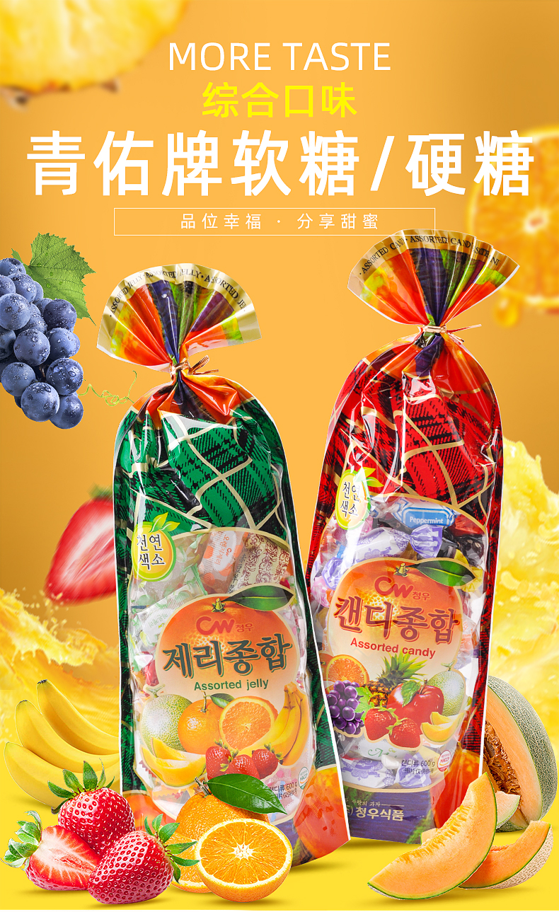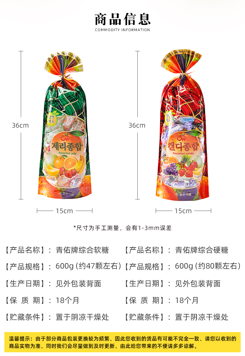 韩国青右橡皮糖/综合水果糖600g 多种水果味 独立包装 年货必备 062088/061545