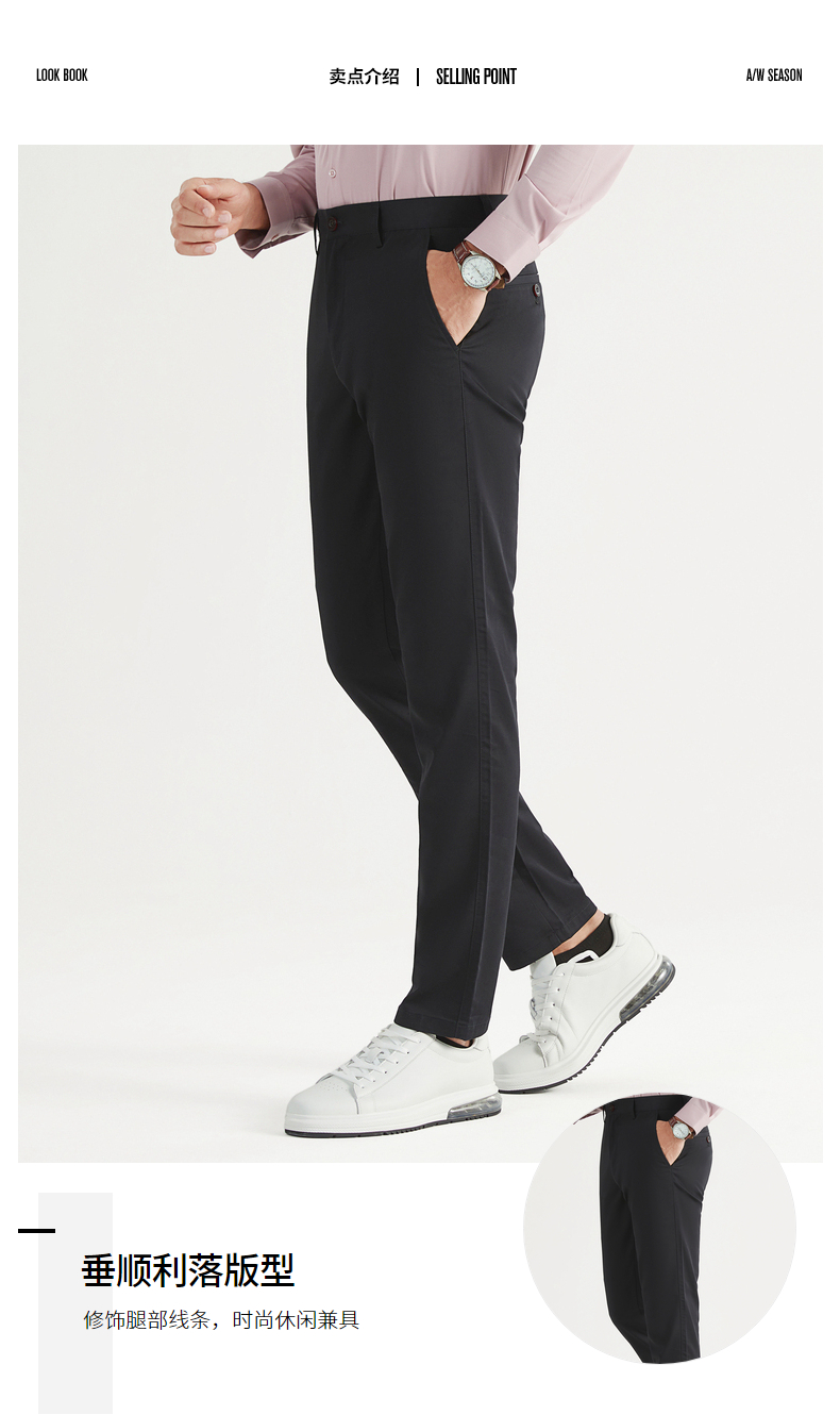 【莫代尔】柒牌休闲长裤男春秋款商务通勤上班直筒透气男裤子122H70770
