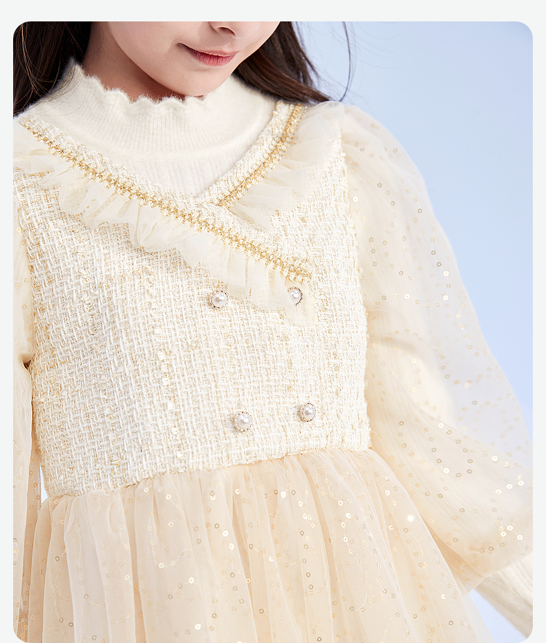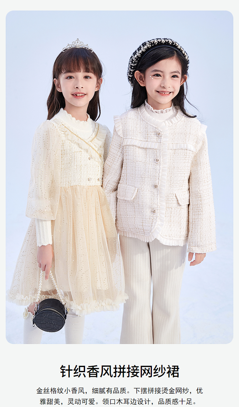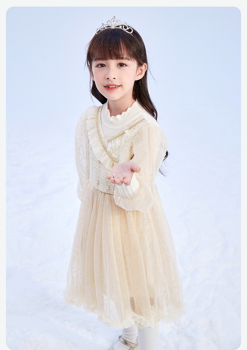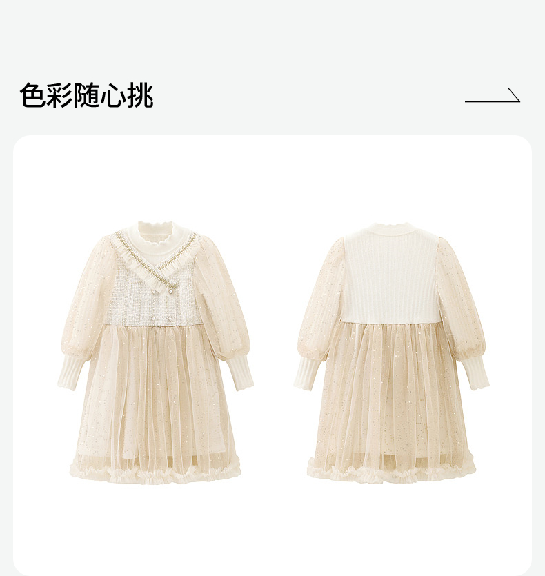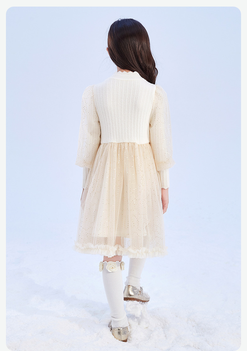 笛莎Deesha 童装女童连衣裙2023冬季针织香风拼接网纱连衣裙