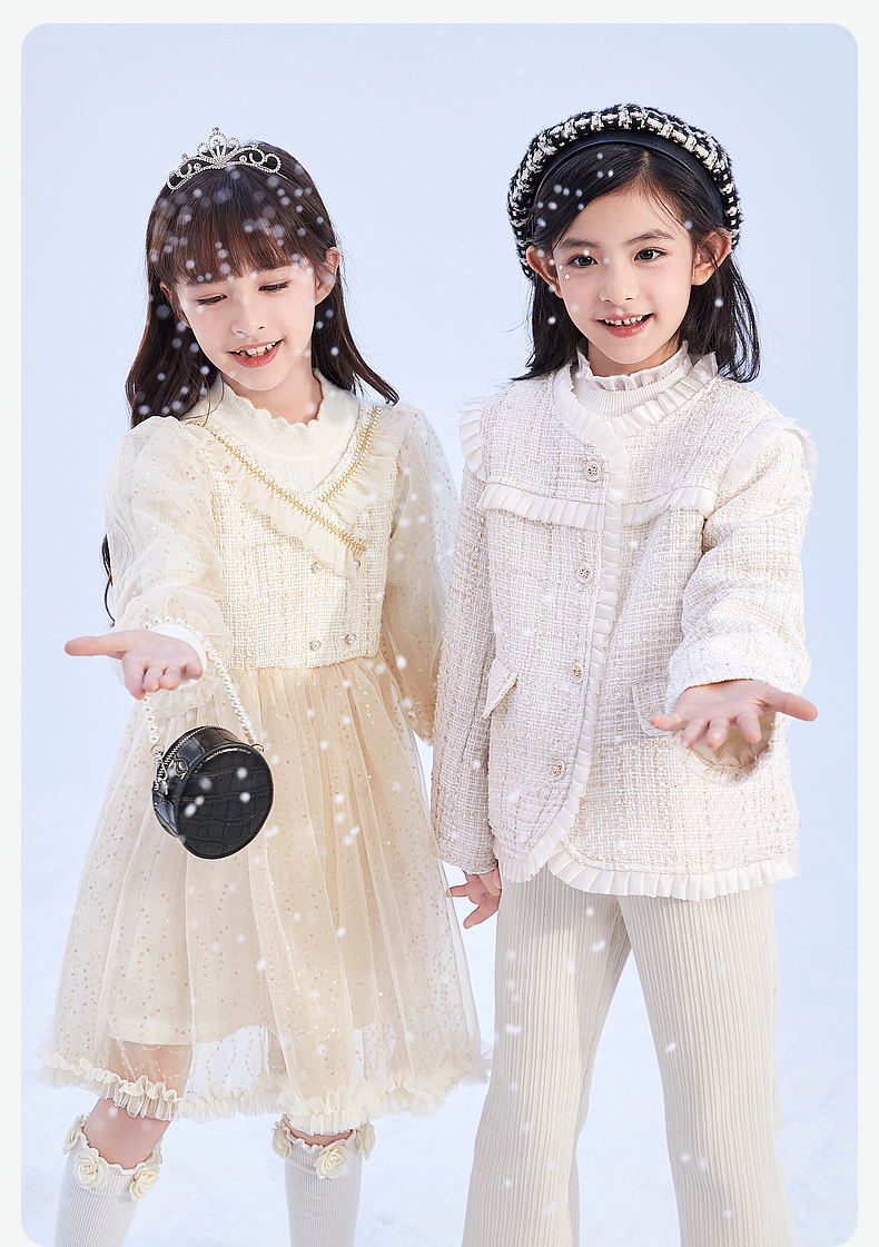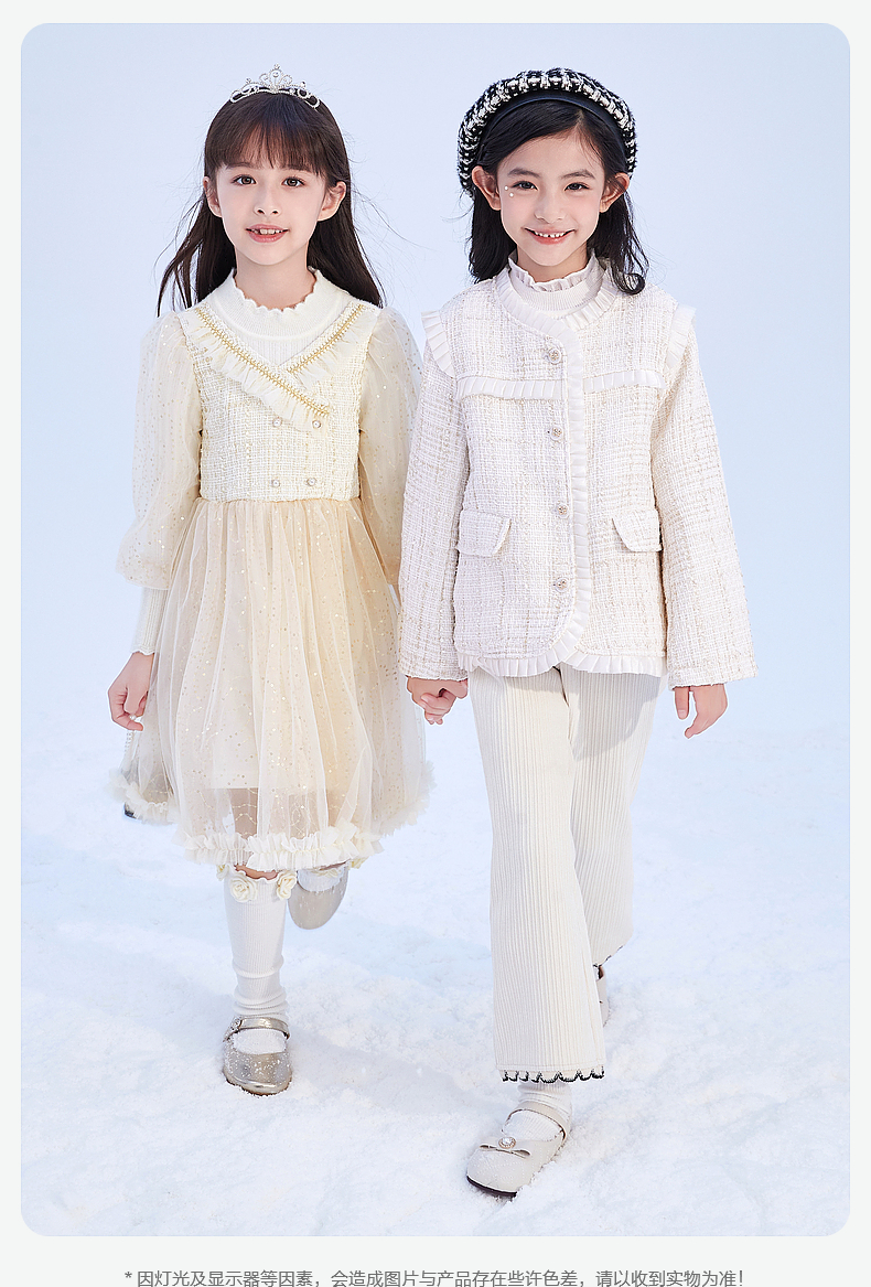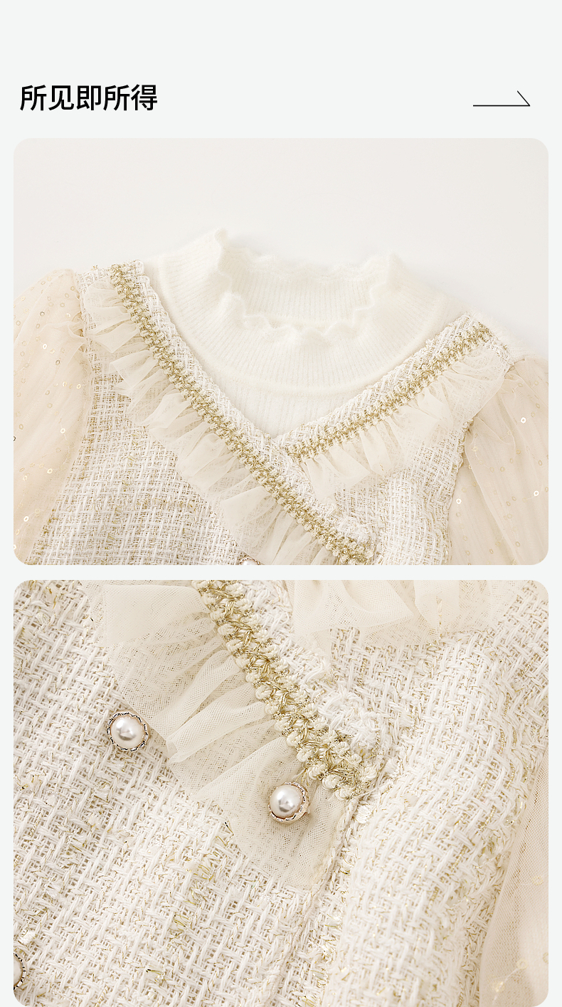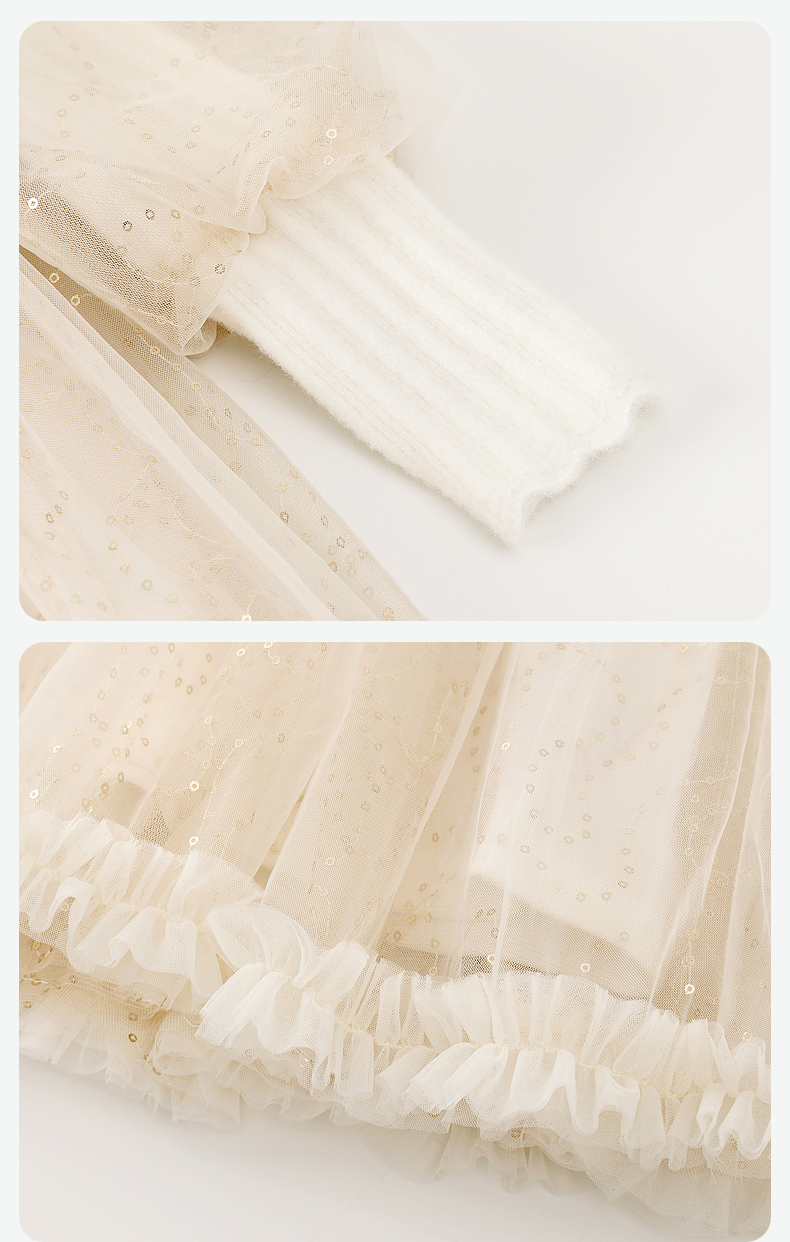 笛莎Deesha 童装女童连衣裙2023冬季针织香风拼接网纱连衣裙