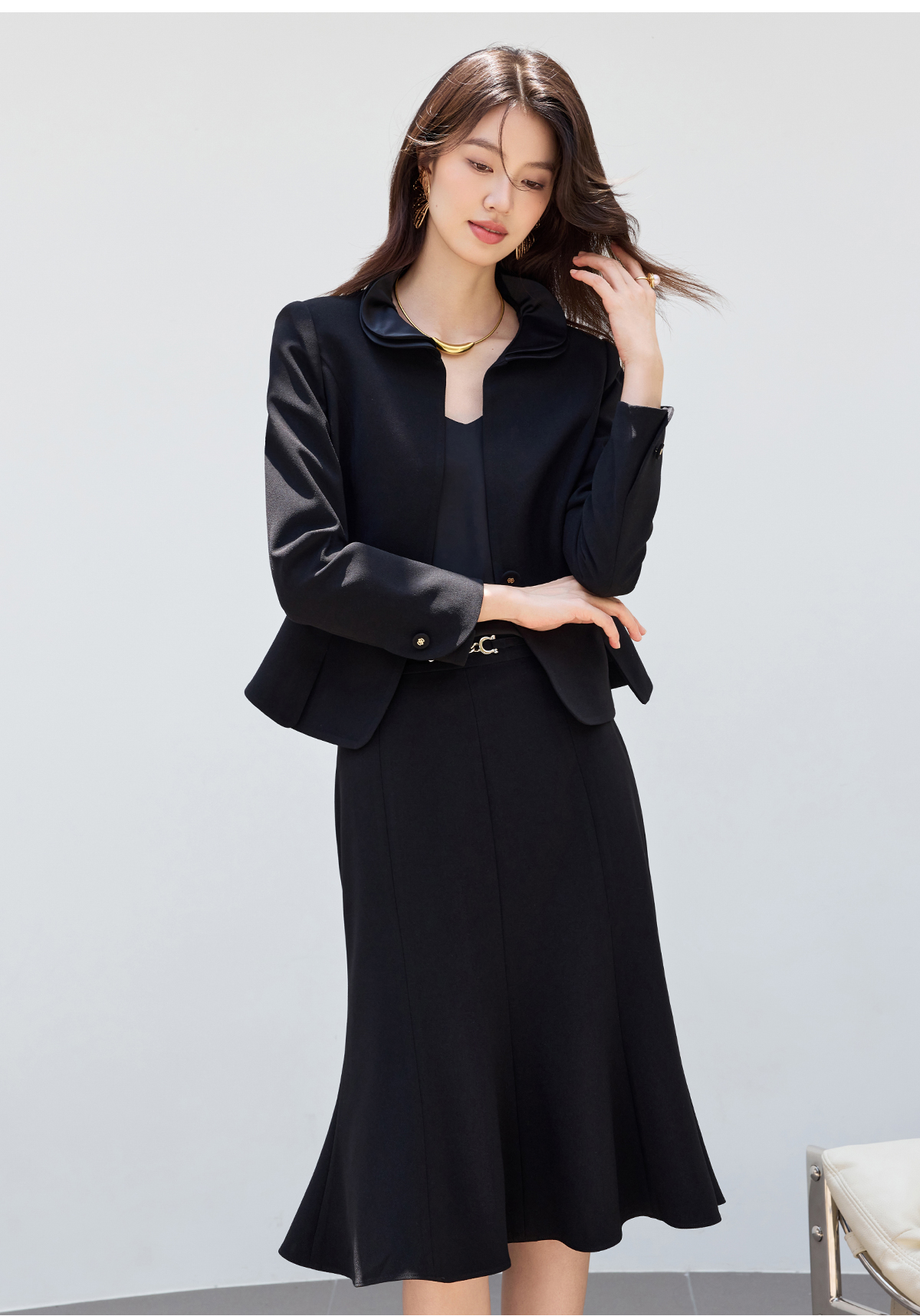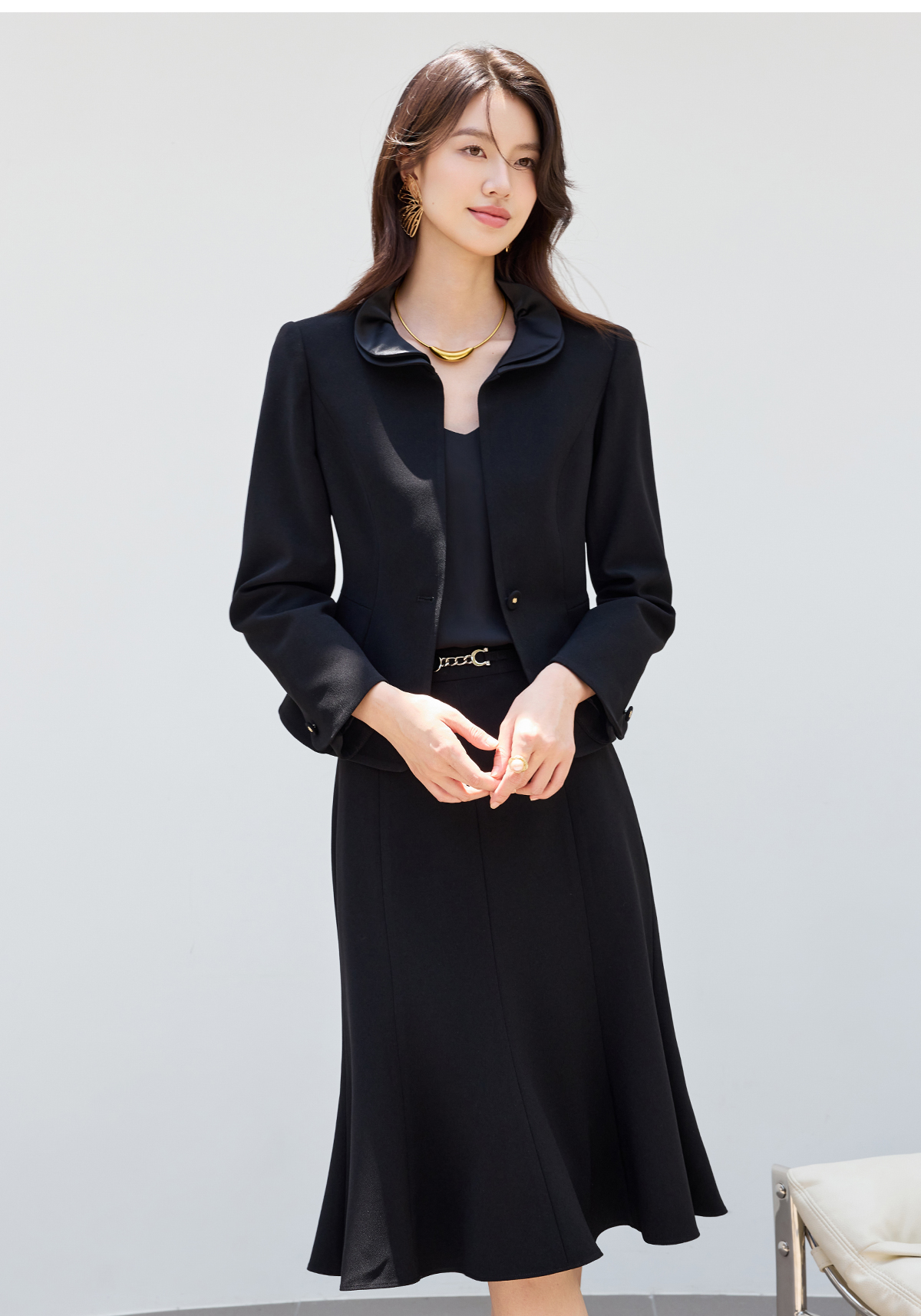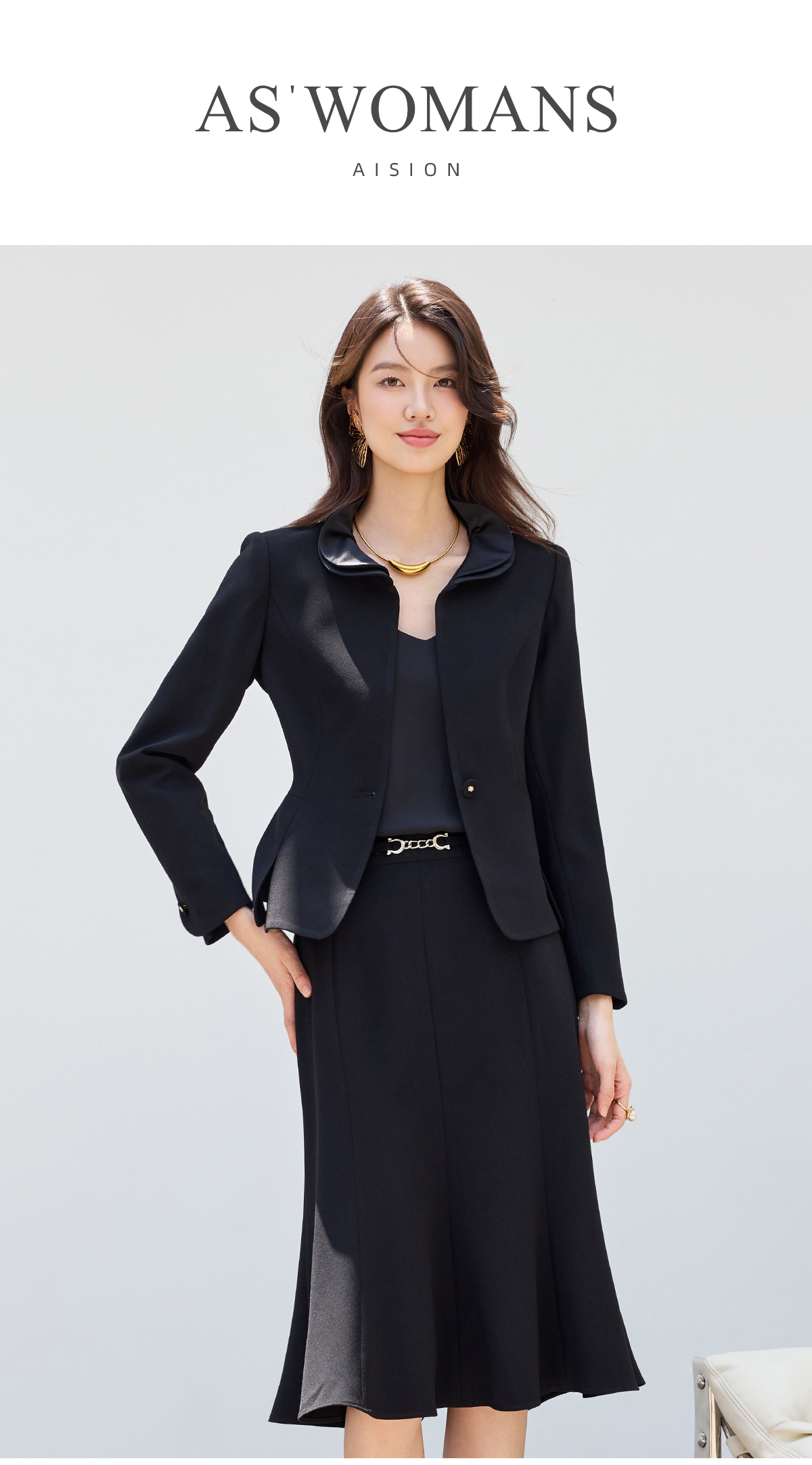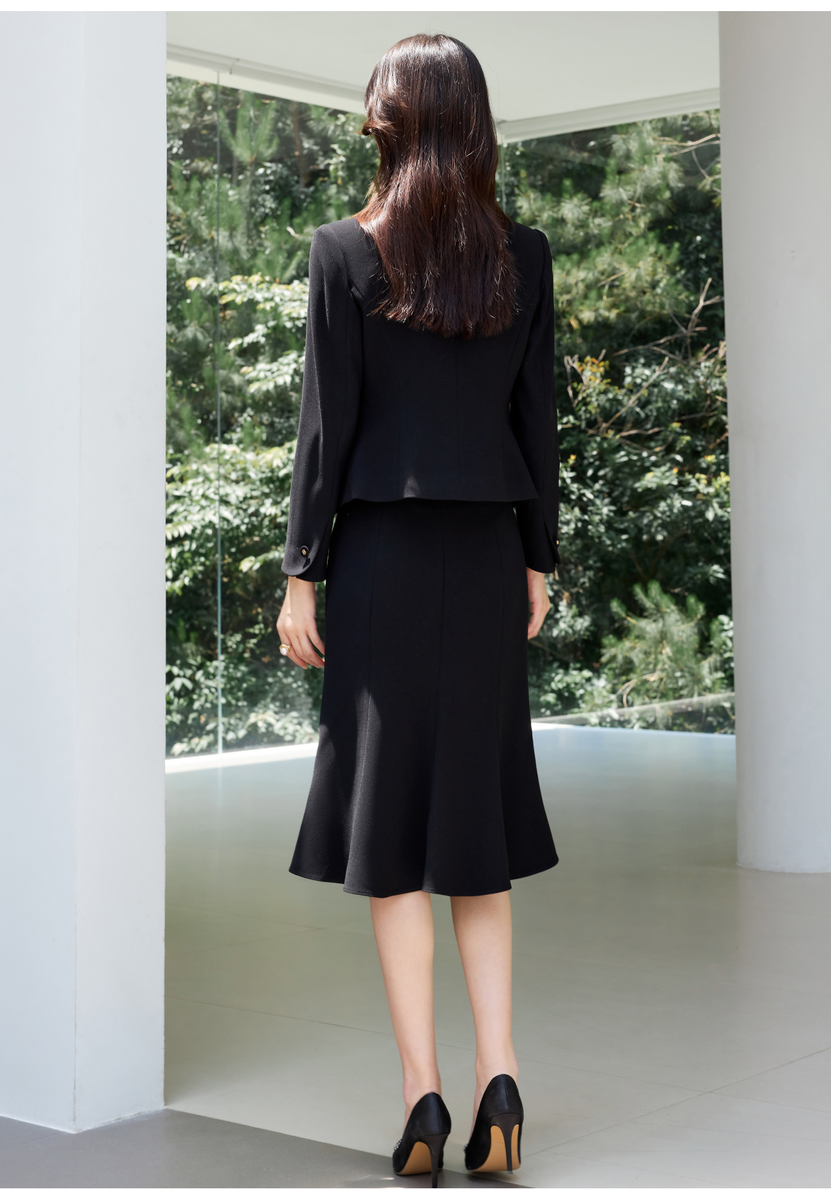 IWY/高级感黑色职业西装套裙女优雅正式场合鱼尾裙两件套25CS805