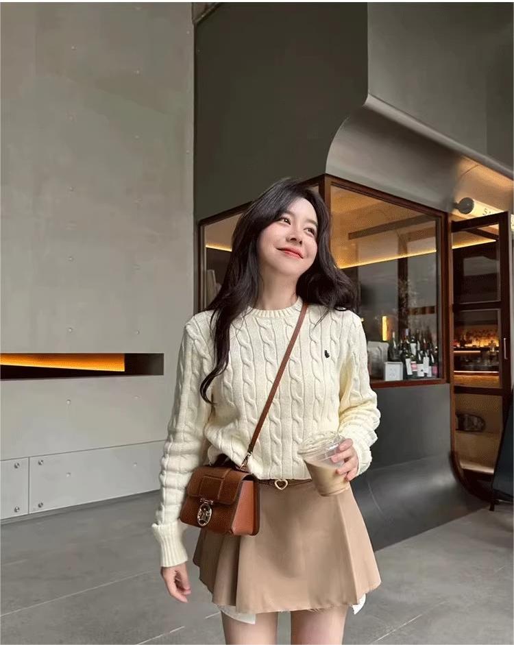 【风风同款!小马刺绣麻花毛衣】秋冬2025新款打底衫软糯慵懒风韩版套头内搭针织衫显瘦圆领打底毛衣